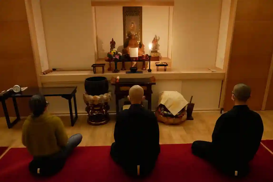 平日の朝。坐禅で心と体をすっきりさせて一日を始め…