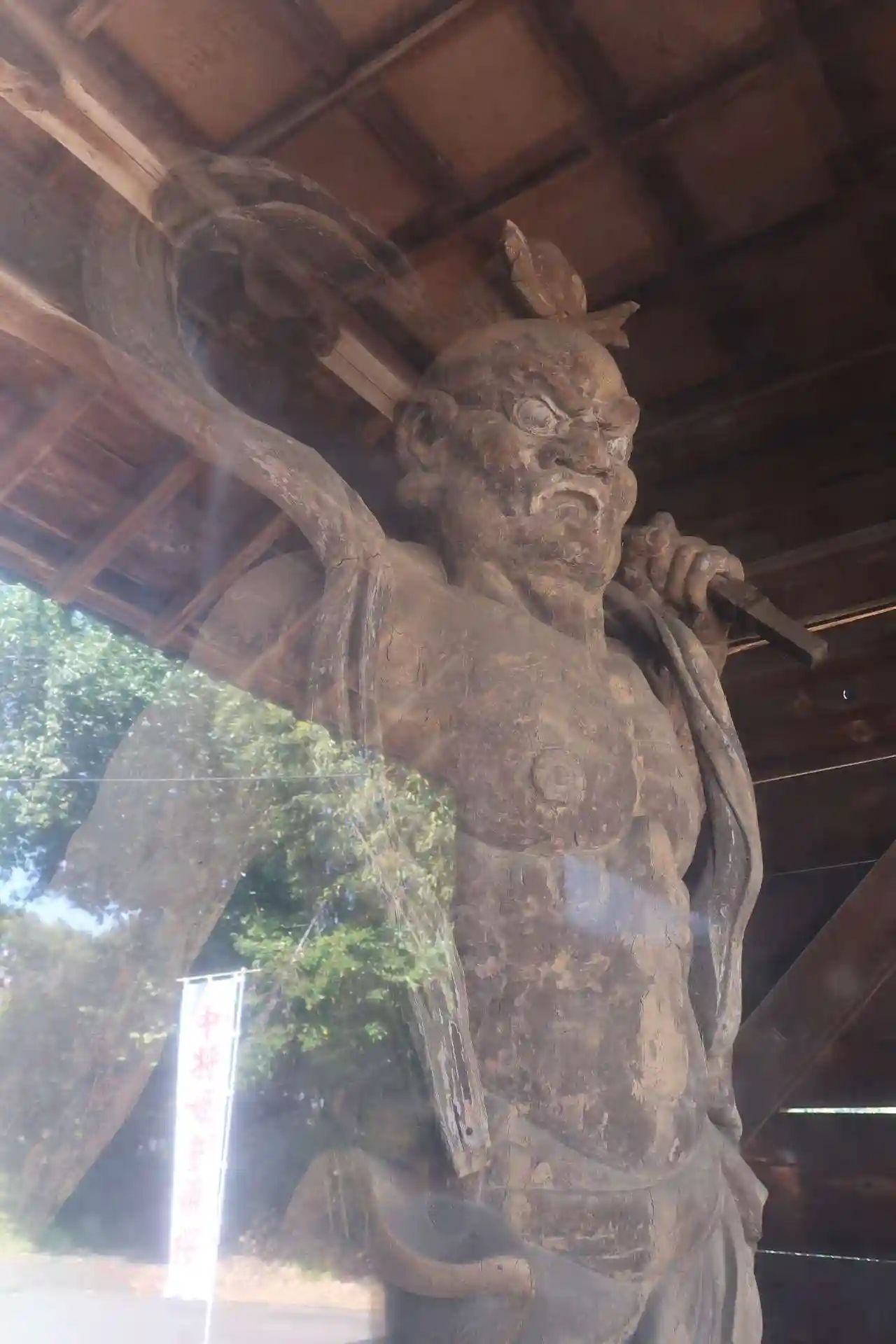 寺院の手前約80mの道路沿いに仁王門だけがあります。昔は境内だったのでしょう。県指定文化財の金剛力士像が護っています。ただ周りは保護のための透明樹脂パネルがあり、光が反射してやや見辛いのは仕方無いです。