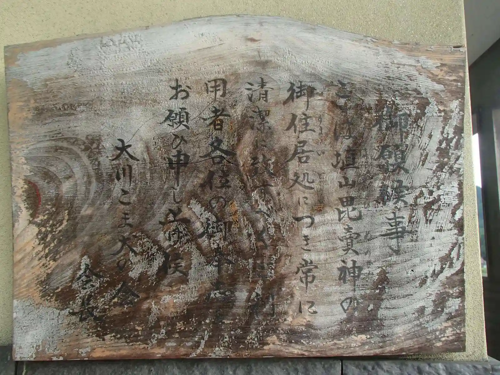 「ここは埴山毘賣神の御住居処につき常に清潔に致すべくご利用者各位の御奉志をお願ひ申し上げ候」