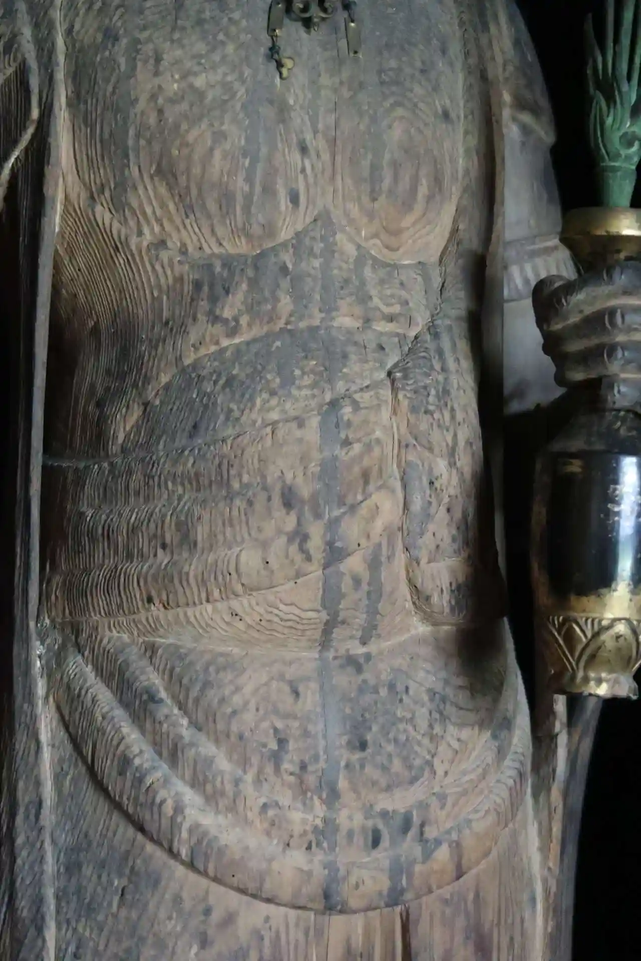 2つの厨子が並んでいて、厨子の扉を開けて頂くと、左側に十一面観音立像、右側に阿弥陀如来立像です。十一面観音立像は、高さ約111cm、一木造り、衣文の彫りは浅めで11世紀頃の作と見られています。丸いお顔でおちょぽ口、少年の様で可愛らしいです。阿弥陀如来立像は高さ約98cm、一木造り、衣文の彫りは結構浅めで、十一面観音より100年位後に作られた12世紀頃の作と見られています。目尻が下がり、こちらもおちょぼ口、とても優しい感じです。