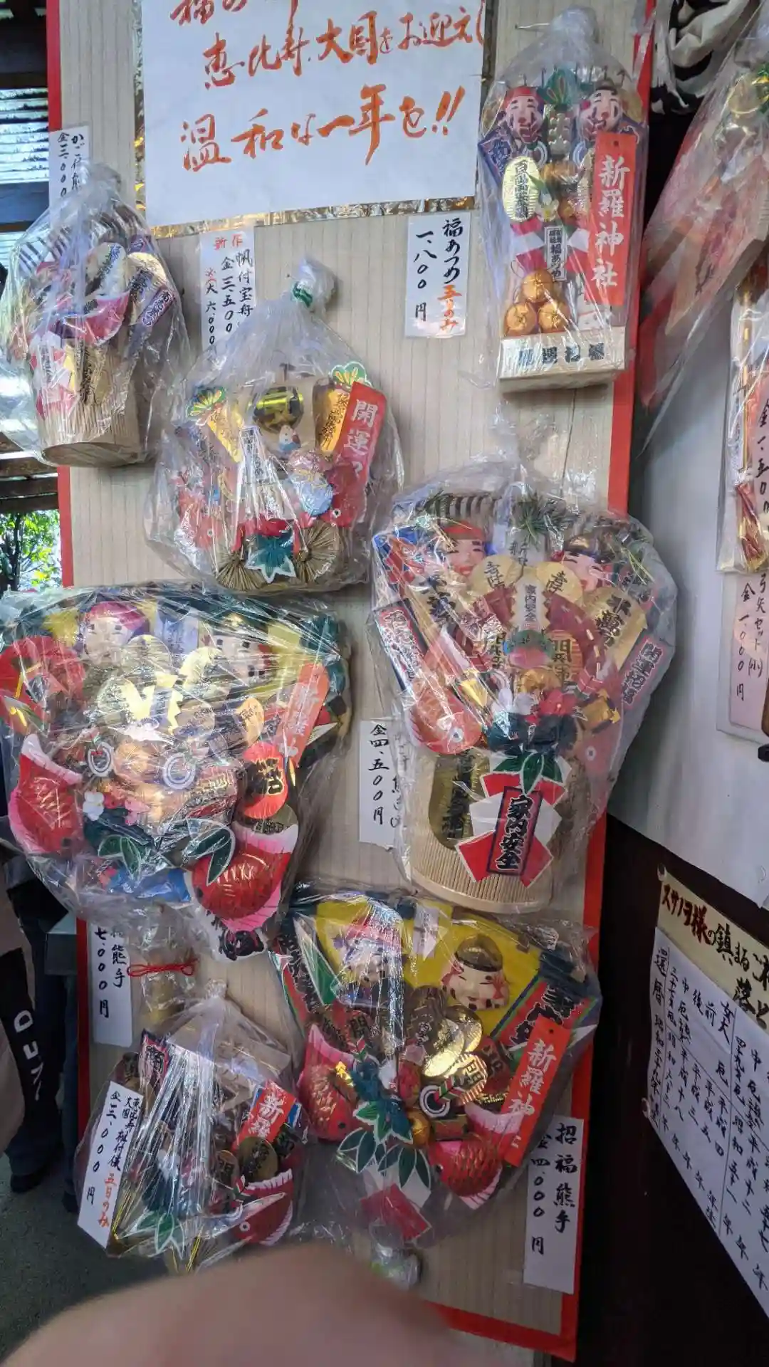 破魔矢をはじめ、お正月購入品の陳列も数多あることでしょう。破魔矢は並んでいる間に見本以外完売の様子。