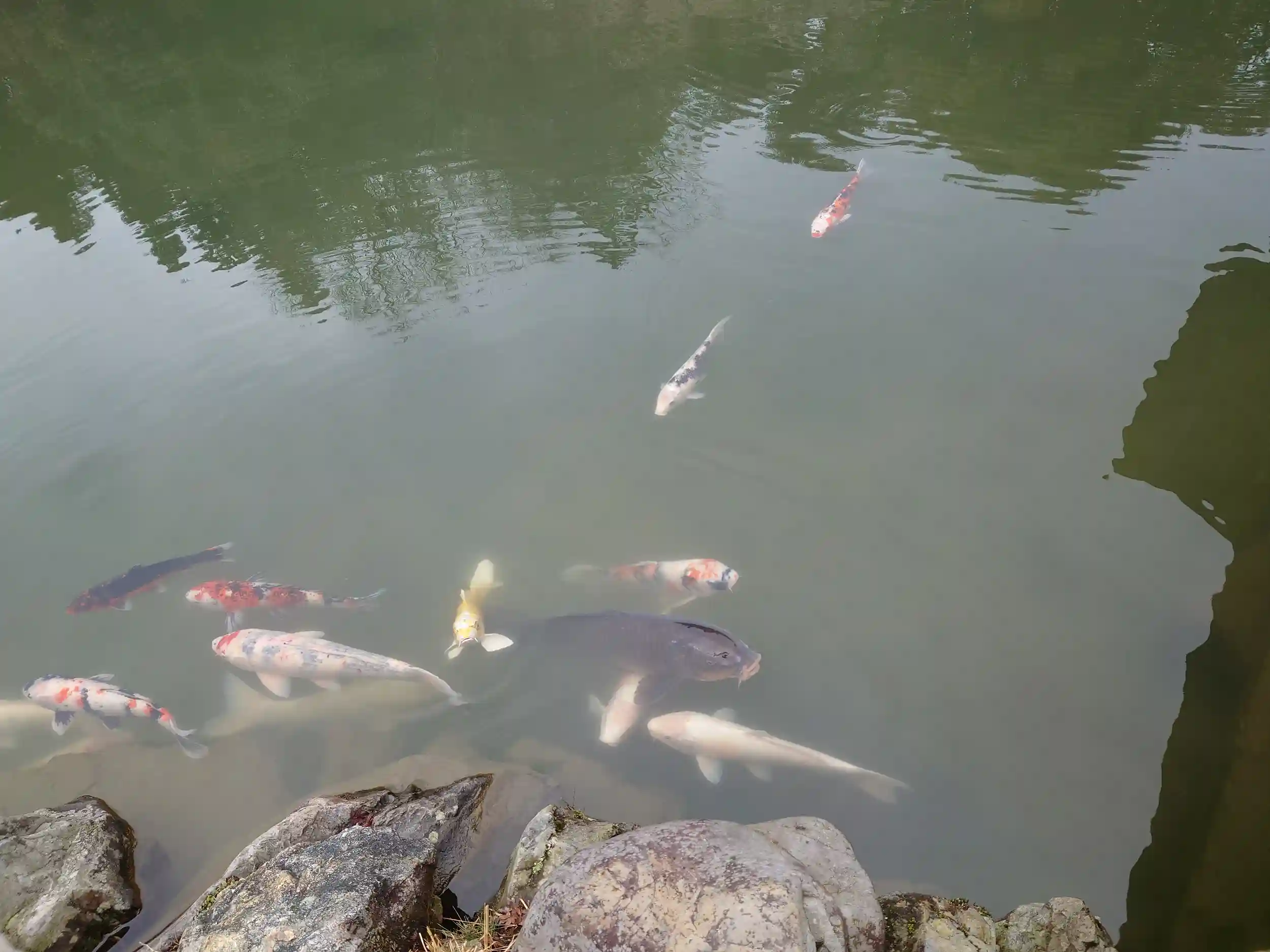 大きな池があって鯉が沢山泳いでました。