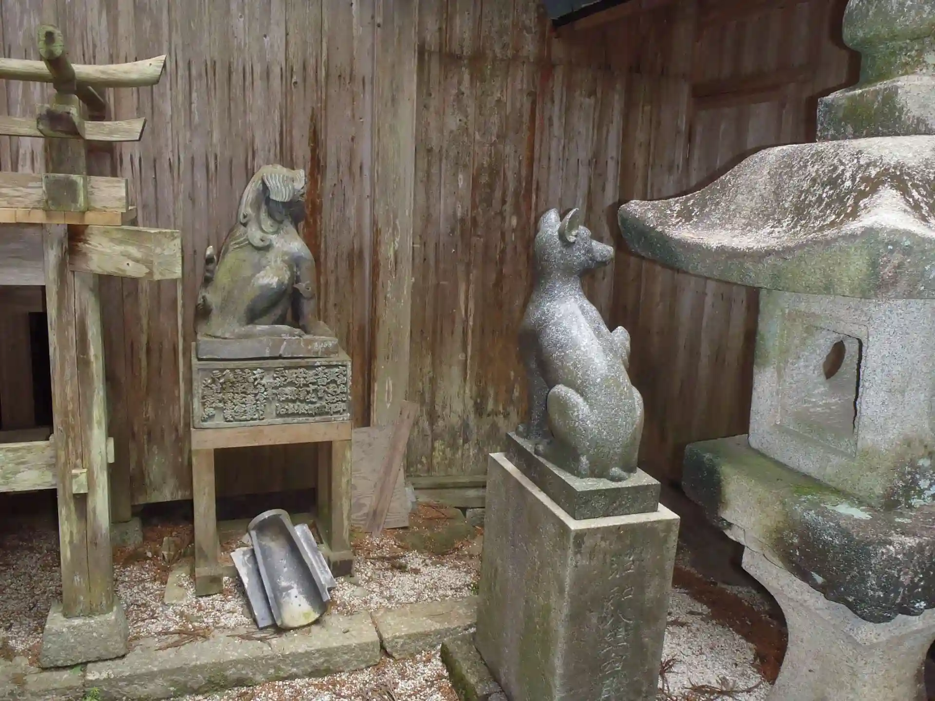 吽形狛犬:陶製(奥)のようです。文化財とのことで近づくことはできません。