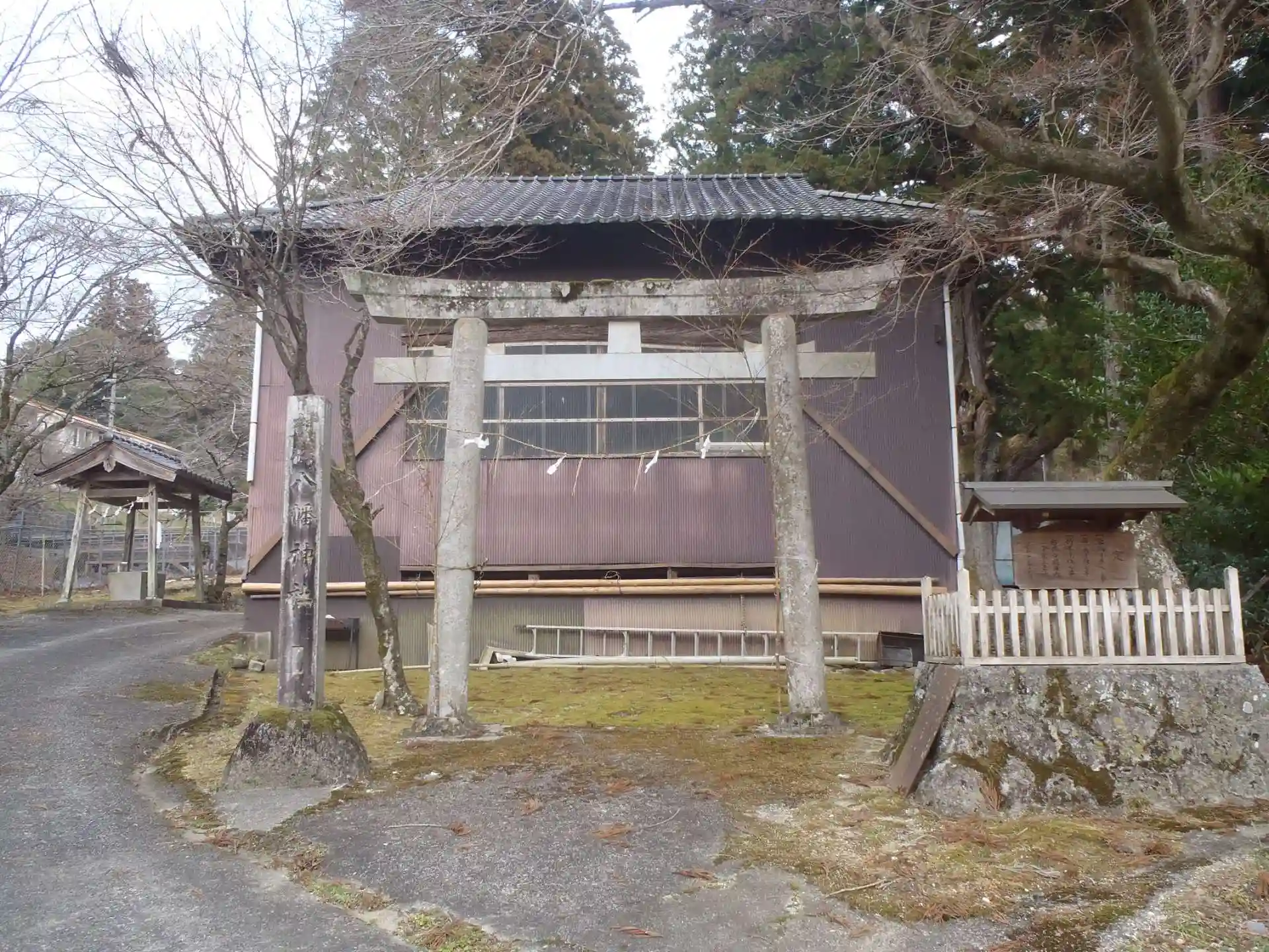 鳥居:奥の建物は農村舞台