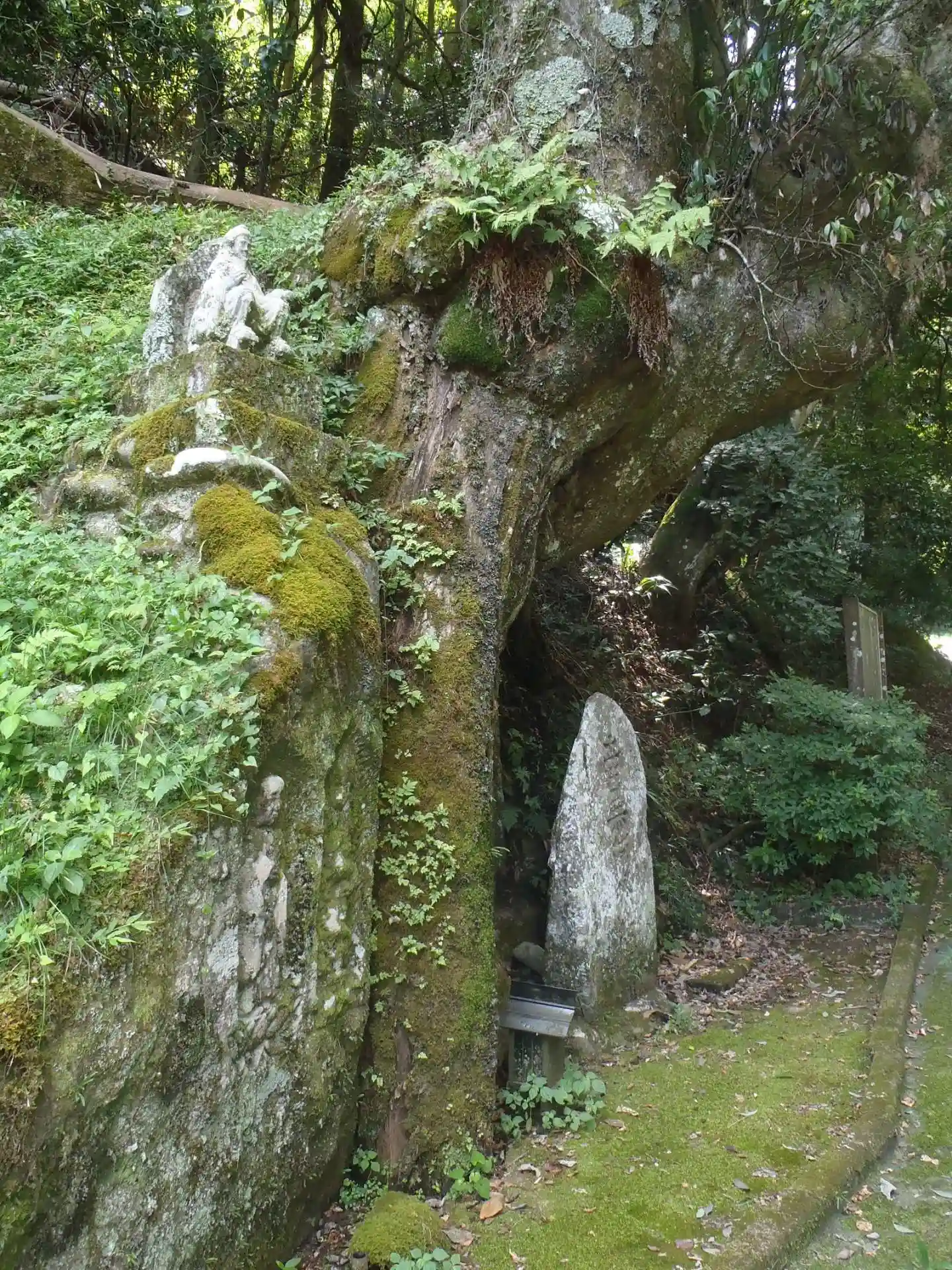 上方には「役行者」の石像が佇まれています。