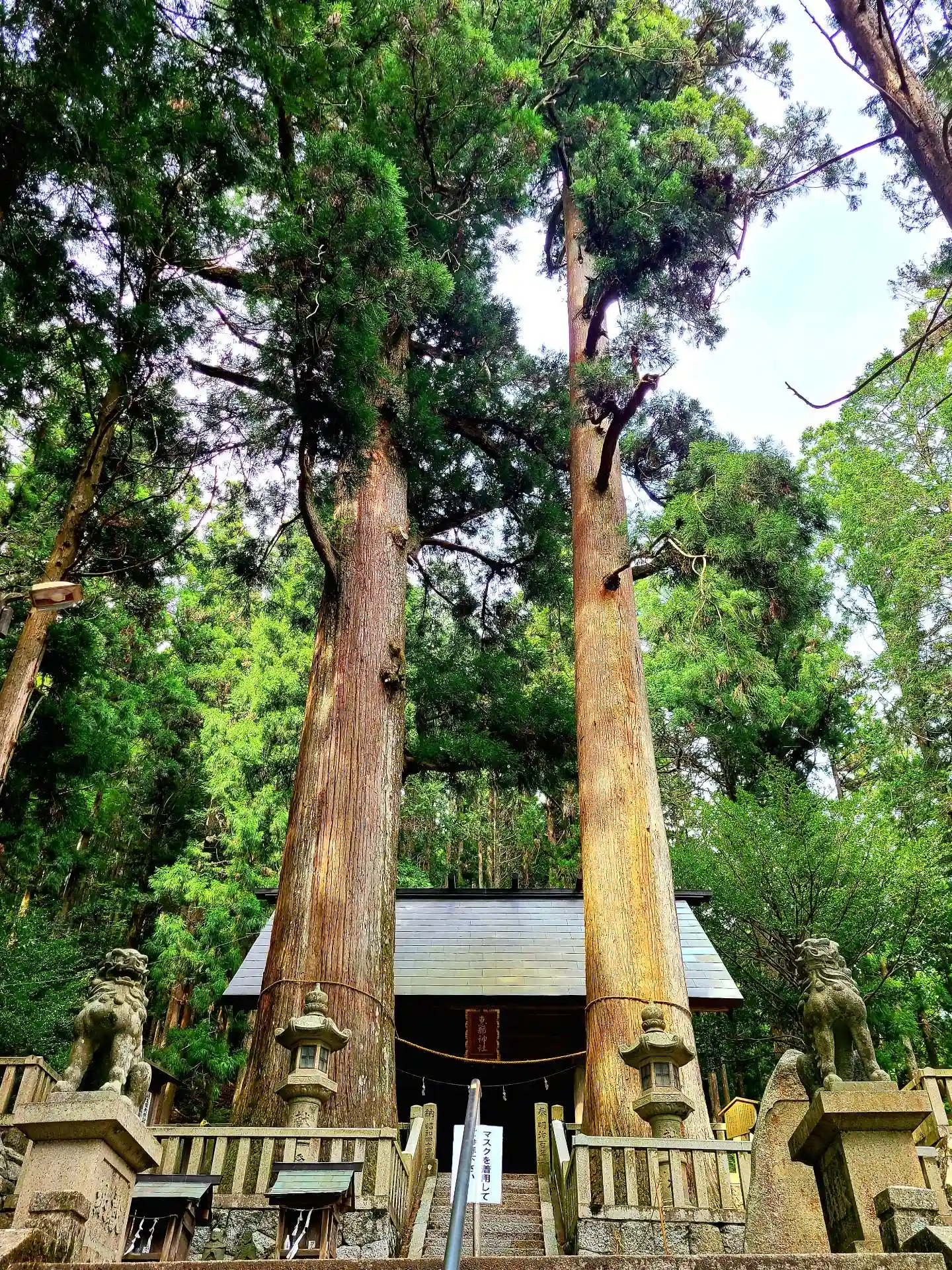 美命が宿られる御神木の夫婦杉の存在が際立つ、