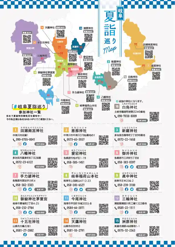 岐阜県内16の神社を巡ってみてください。
