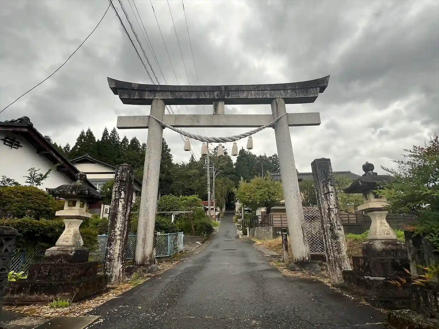 境内地の中程に鳥居と一対の狛犬があります。