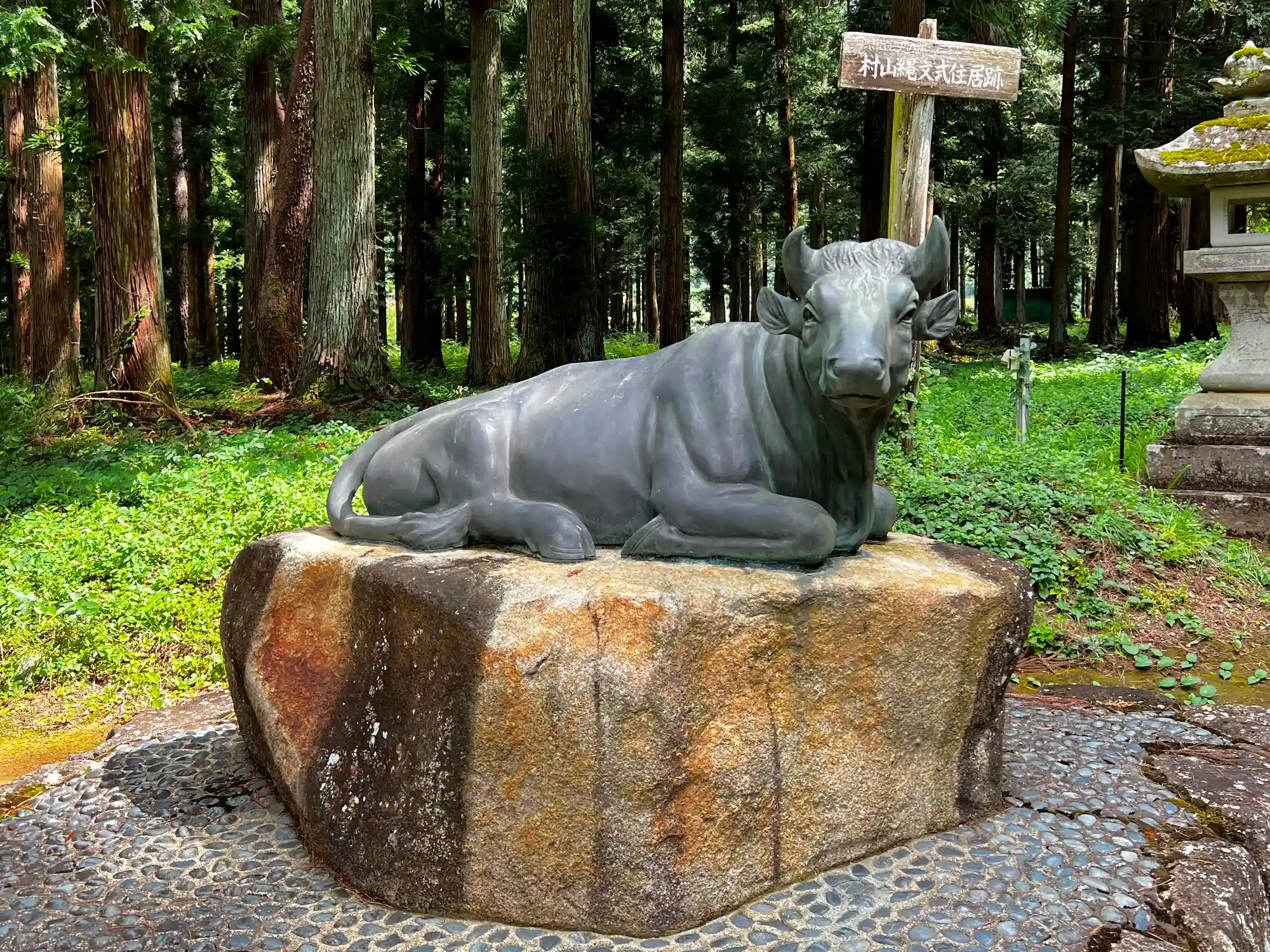 階段を上がって参道を少し進んだ左側にある<撫で牛>。天満宮らしい。