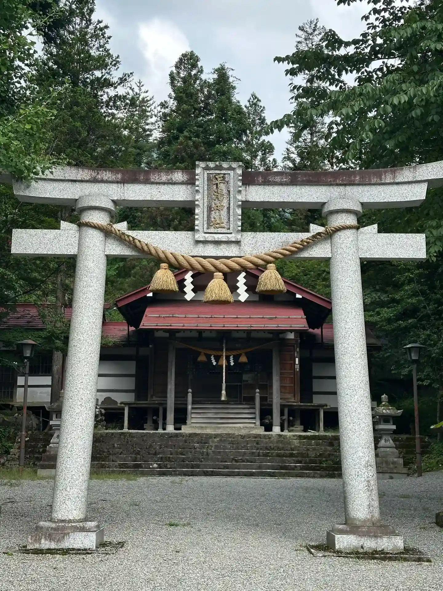 正面から見た平湯神社 鳥居 the gate of the shrine