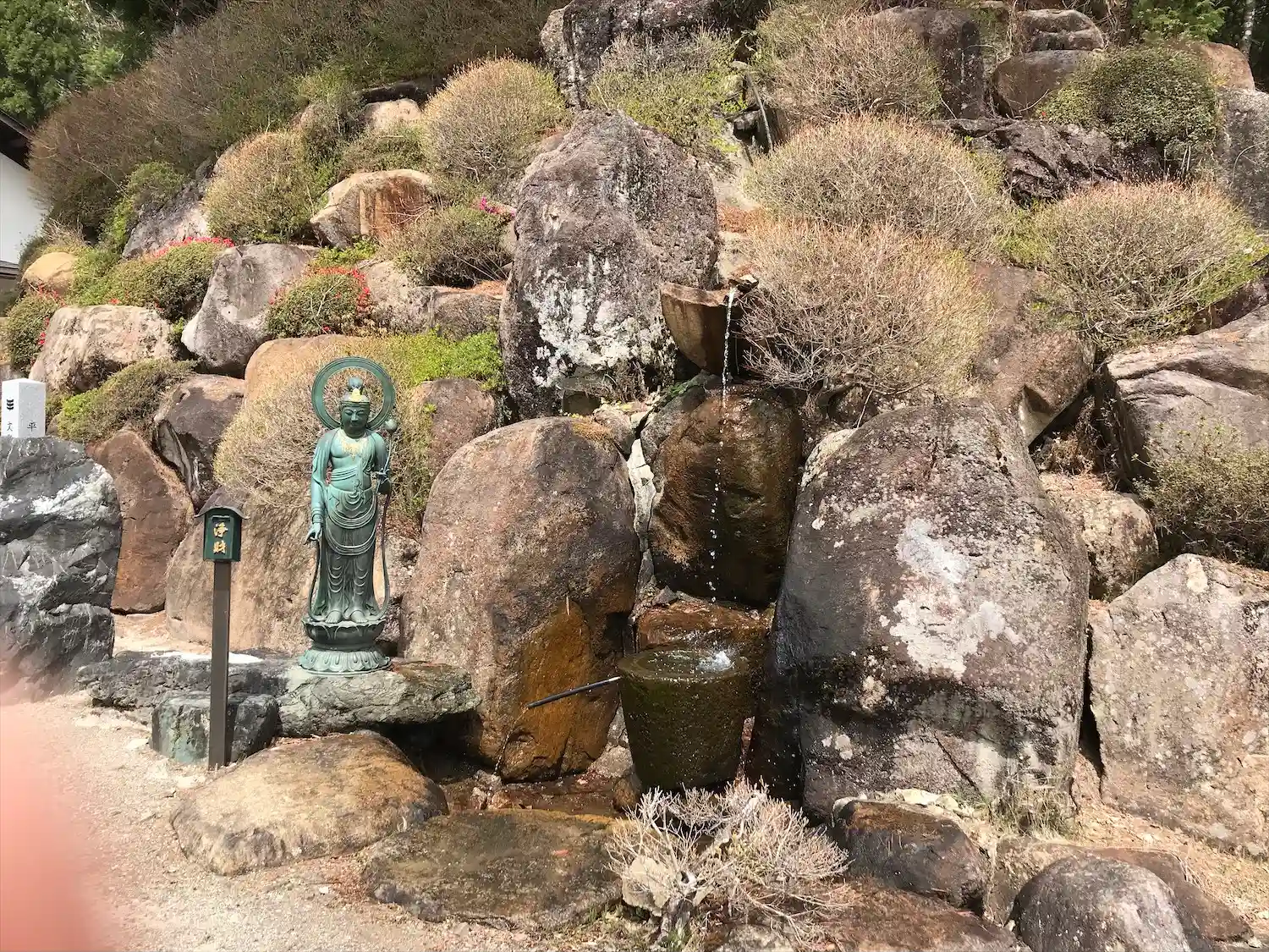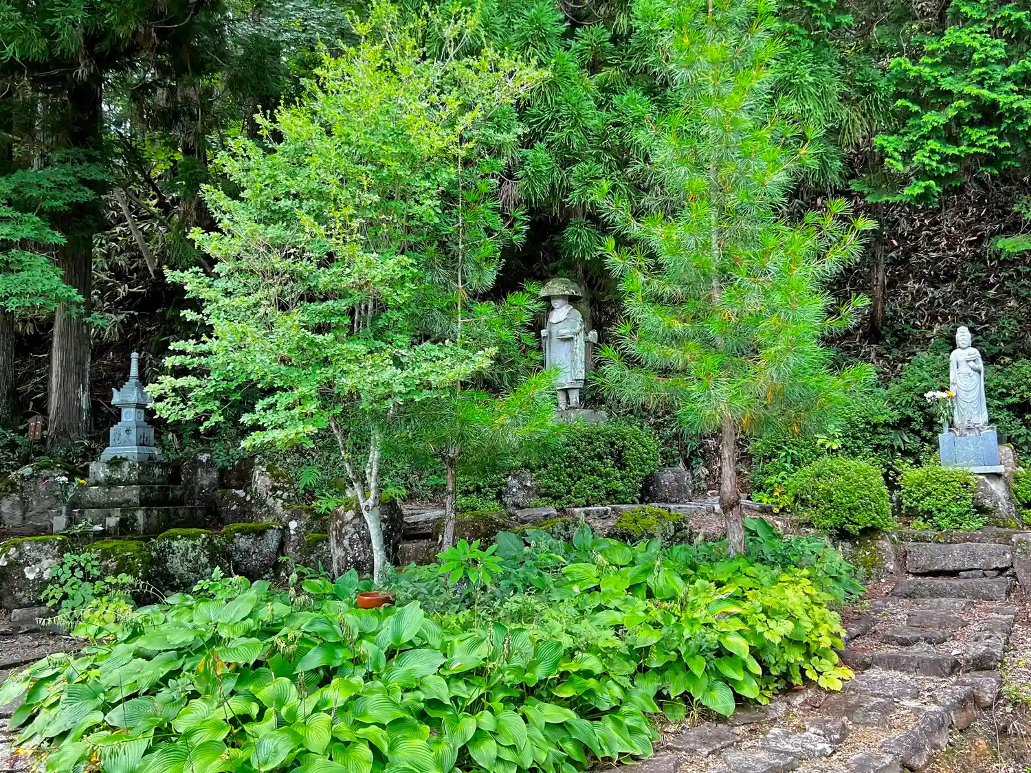 宿儺堂の左手にある庭。中央は弘法大師像。
