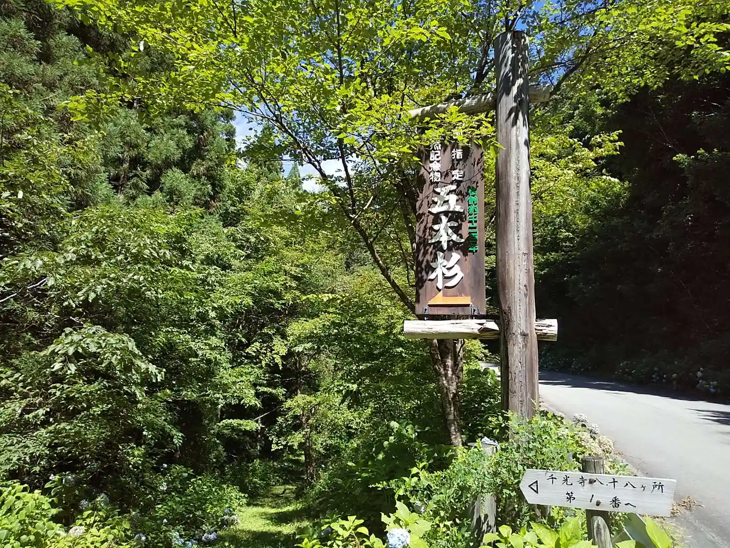 5本杉へは途中の駐車場から徒歩3分👣