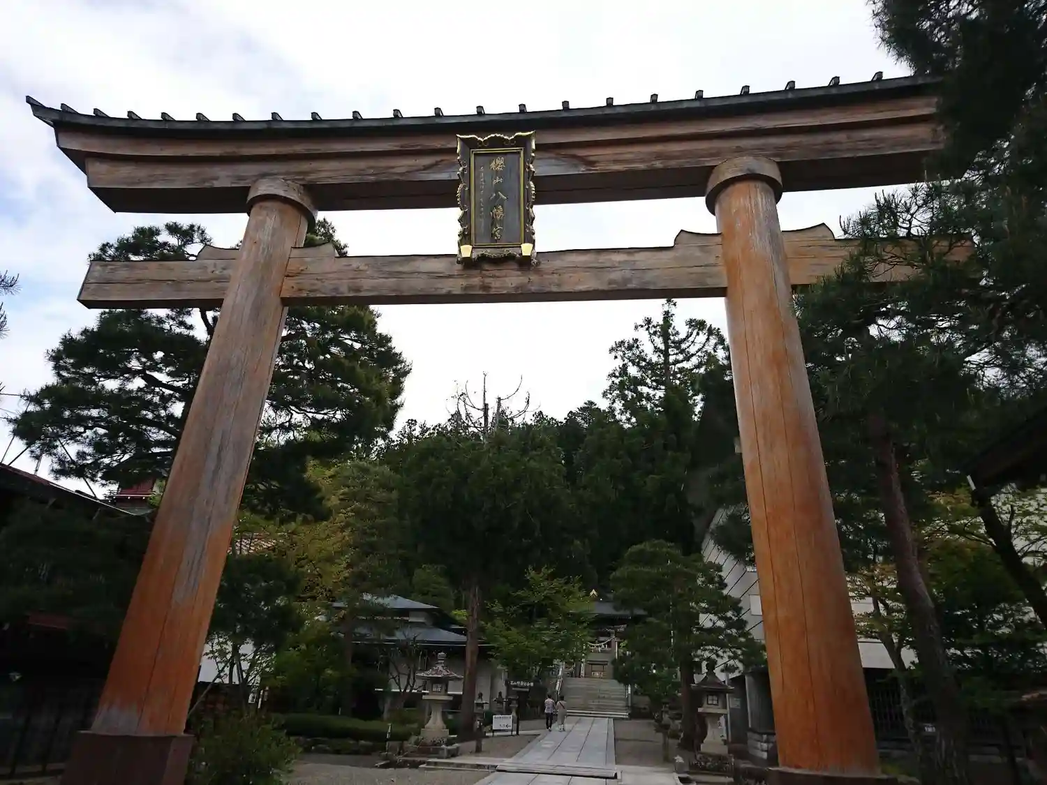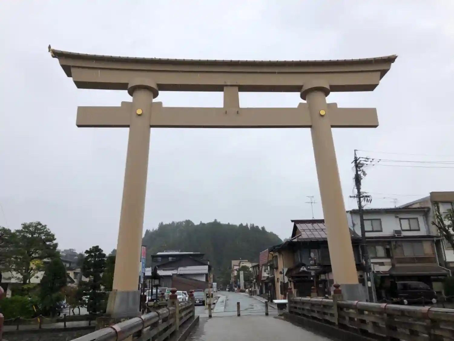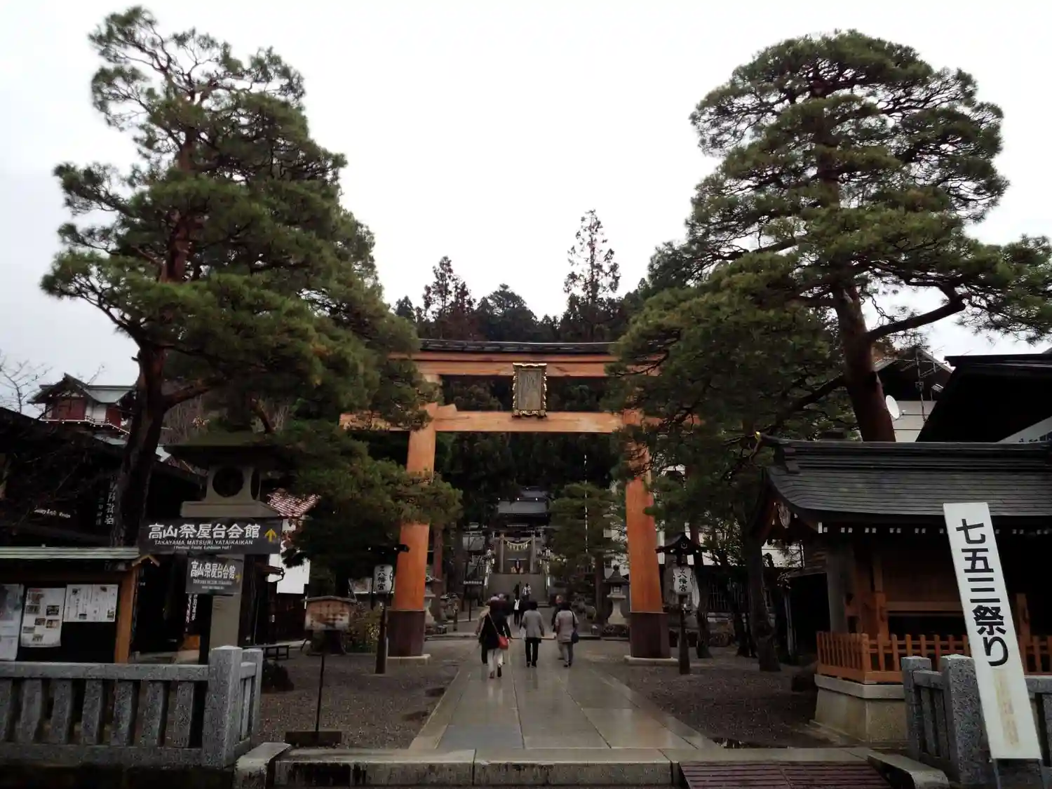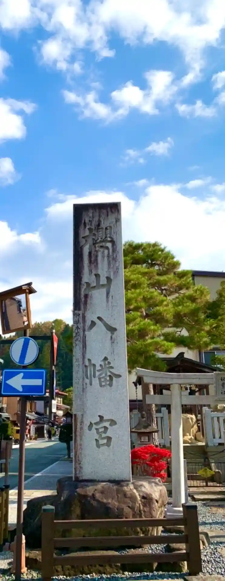 高山の朝市通りを歩いていると、大きな鳥居が見えます。