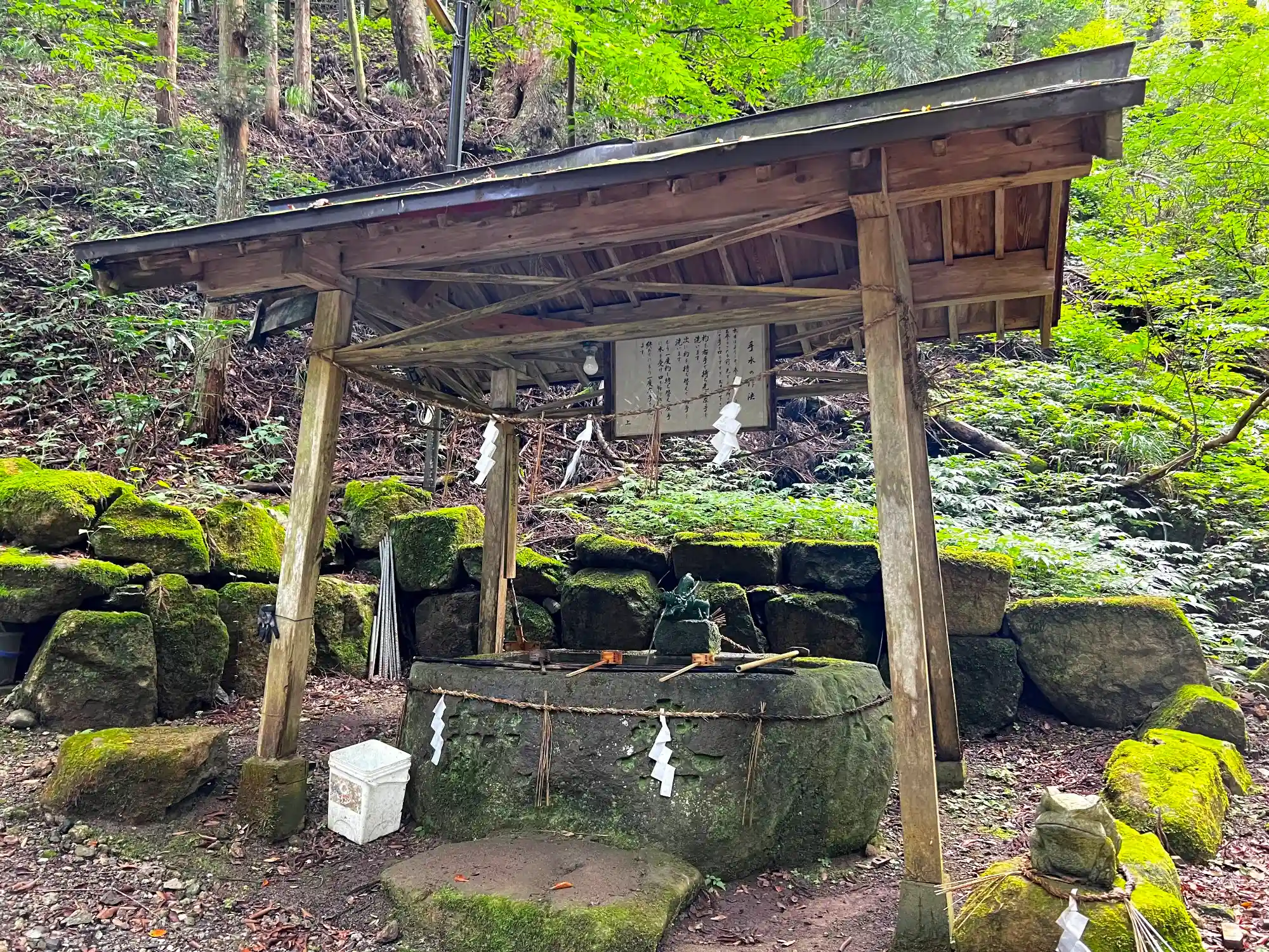 苔生した<手水盤>。水の供給は万全っぽい。