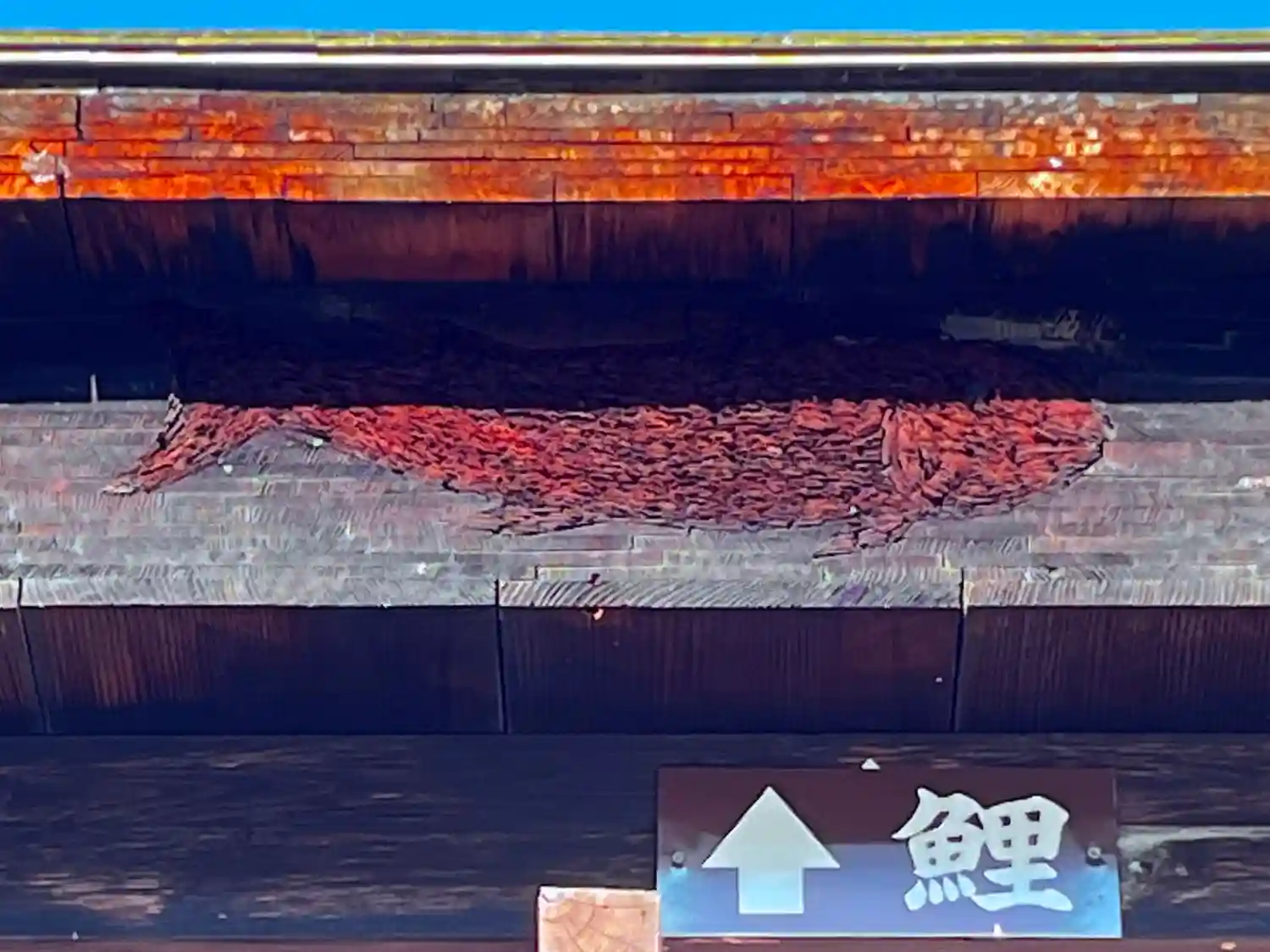 なるほど上を見上げると軒下に鯉がいました。