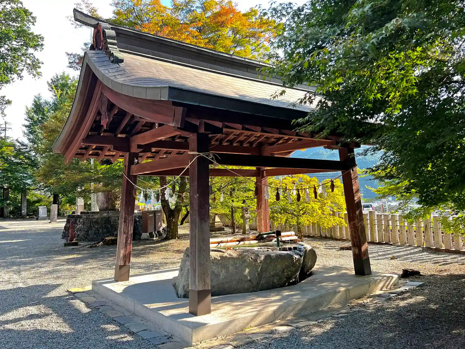 鳥居をくぐって、左方向に数十m進んだところにある<手水舎>。