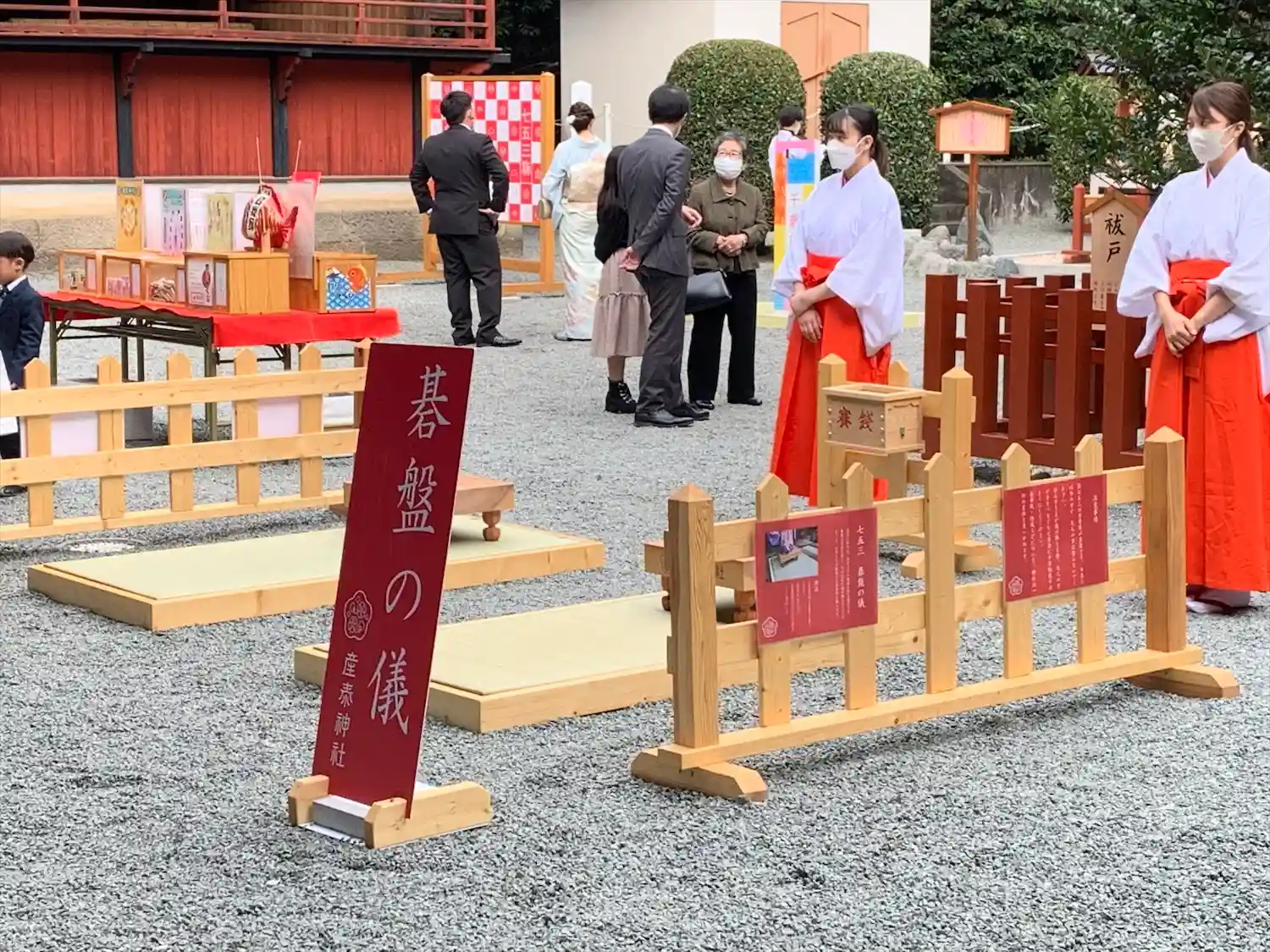 巫女さんが碁盤の儀のお手伝いしてくれるみたいです。