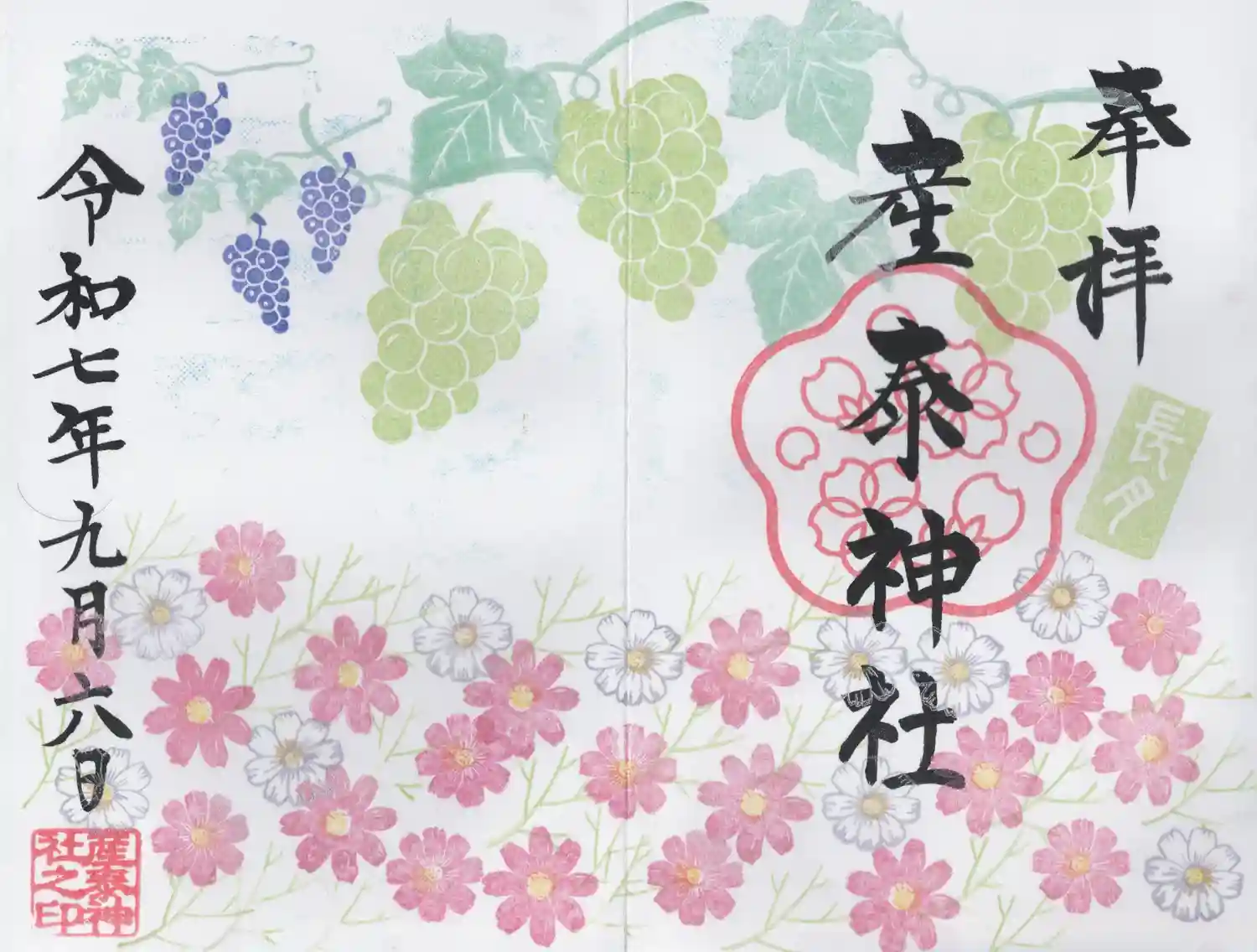 ぶどうとコスモスの秋らしい素敵な御朱印を頂きました。