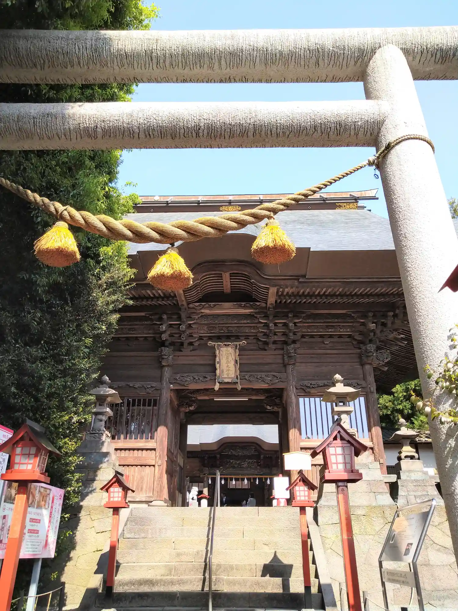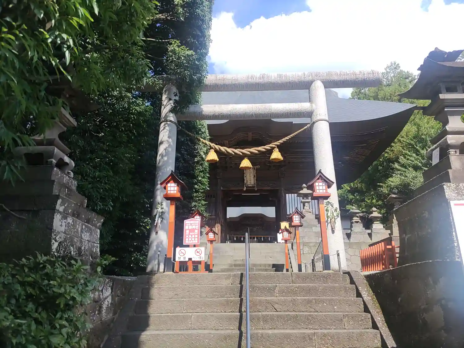 鳥居と神門が階段の上にあり、見上げる感じ
