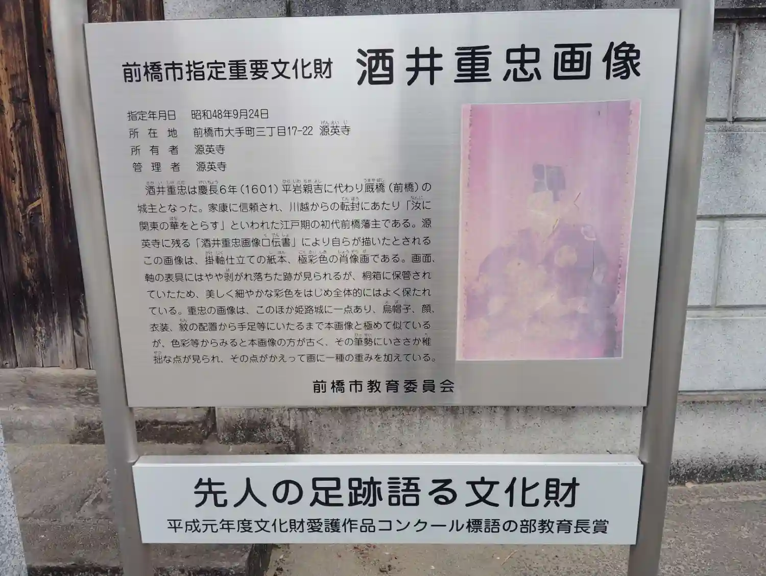 厩橋藩初代藩主、酒井重忠公の自画像が奉納されています。自画像って凄いですね!やっぱり鏡を見て描いた…