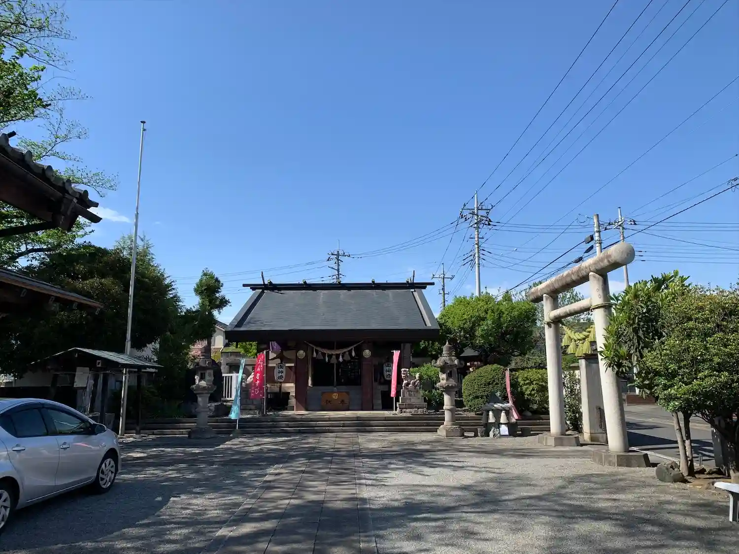 駐車場は見当たらず、境内に止まっている車をみつけて、恐る恐る拝殿横鳥居から入りました。入れるんだぁ〰