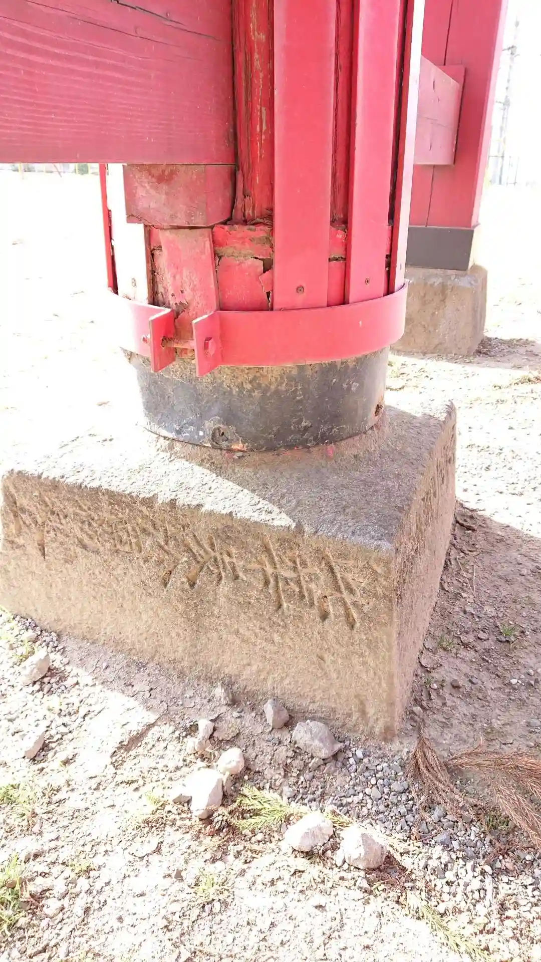 小暮の地に赤城信仰として作られる→天明の浅間噴火の時に赤城は噴火しませんように!と小暮の十字路に移設。一の鳥居となる→有料道路建設により大洞に移築→風雪に損傷激しくなったので、再び小暮に移築再建。