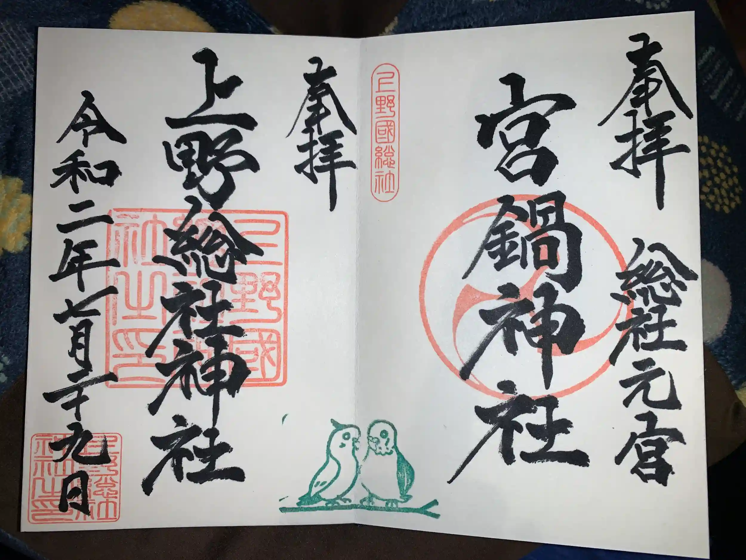 二つの御朱印にまたがる鳥さんが私のツボです笑