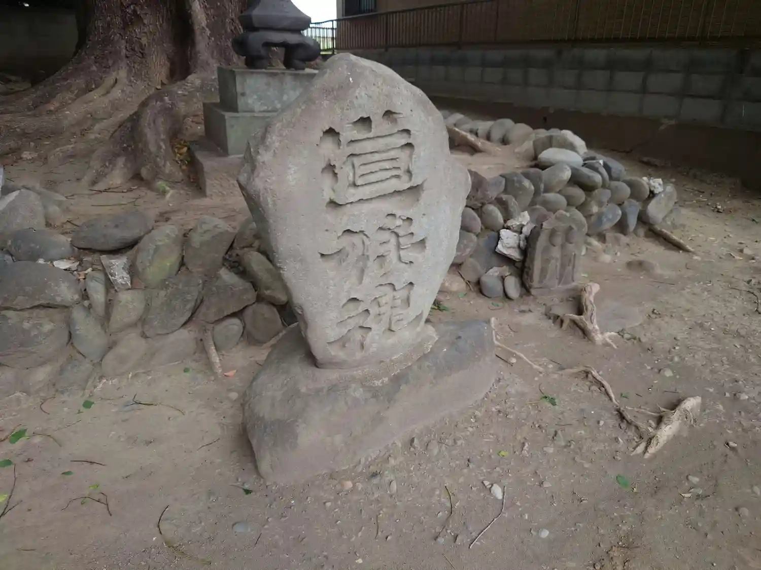 道祖神とものすごい巨大神木あり