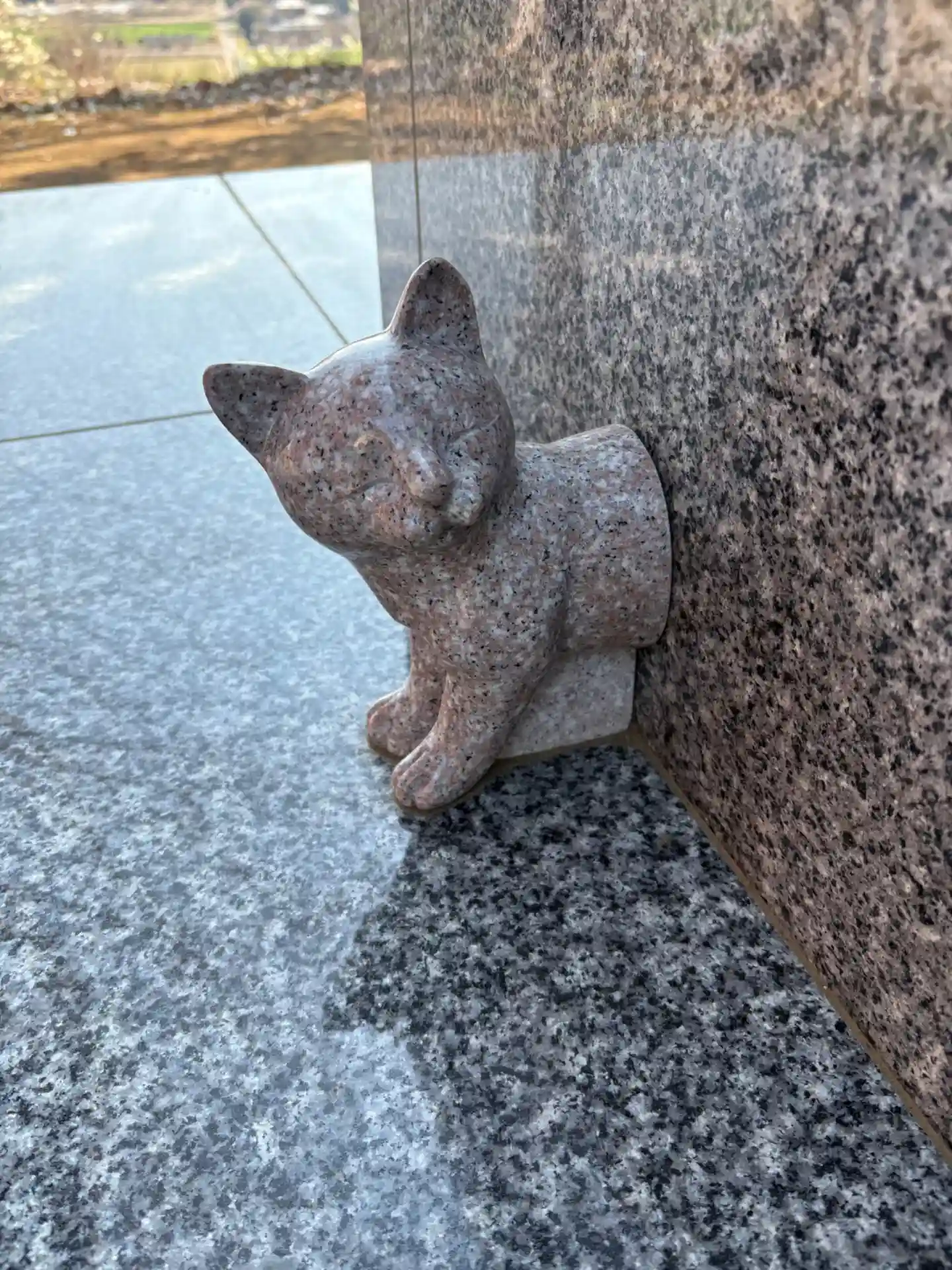 台座から顔を出している猫