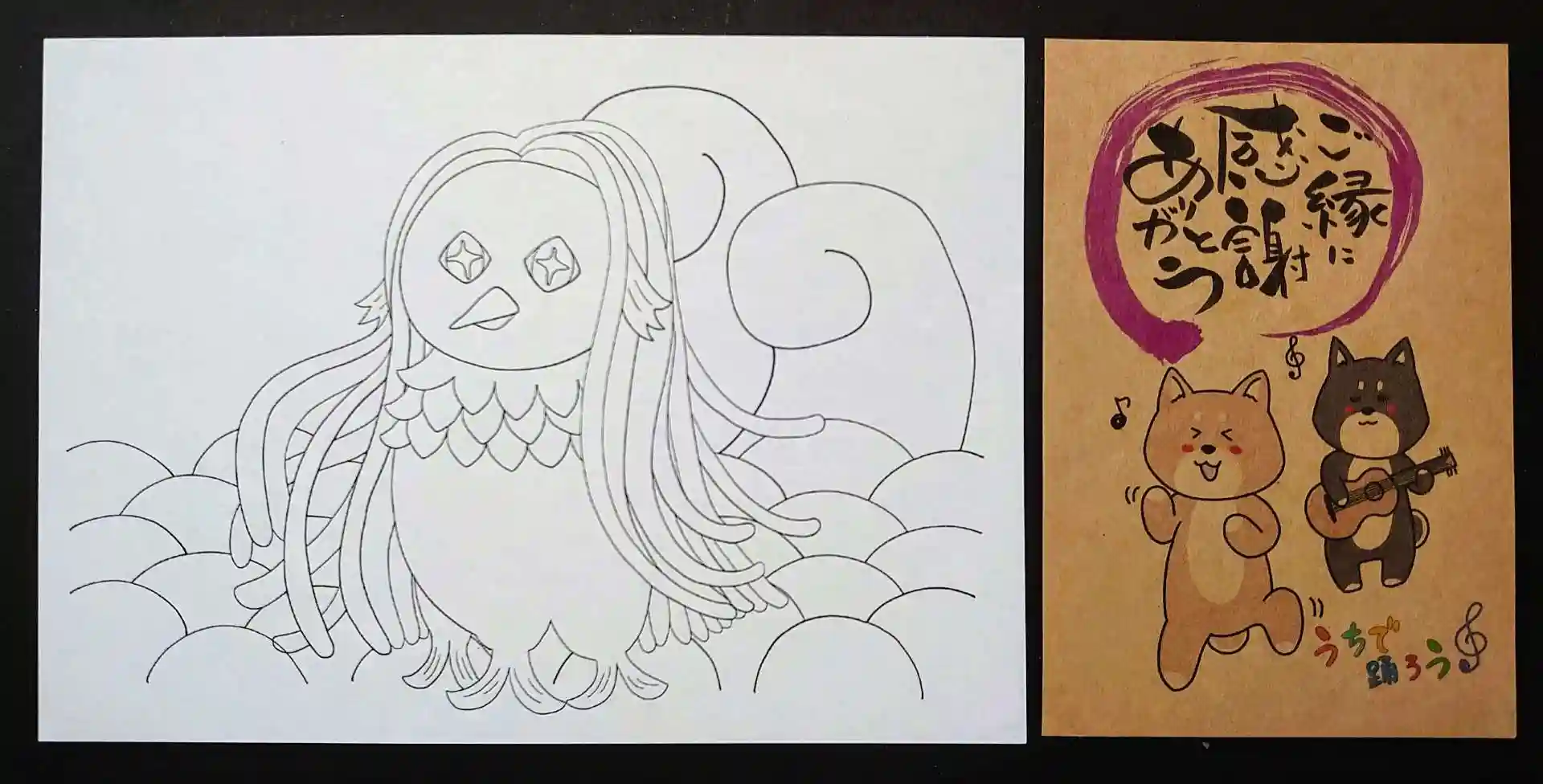 同封されていたアマビエの写仏(写妖怪?)用紙とメッセージカードです。