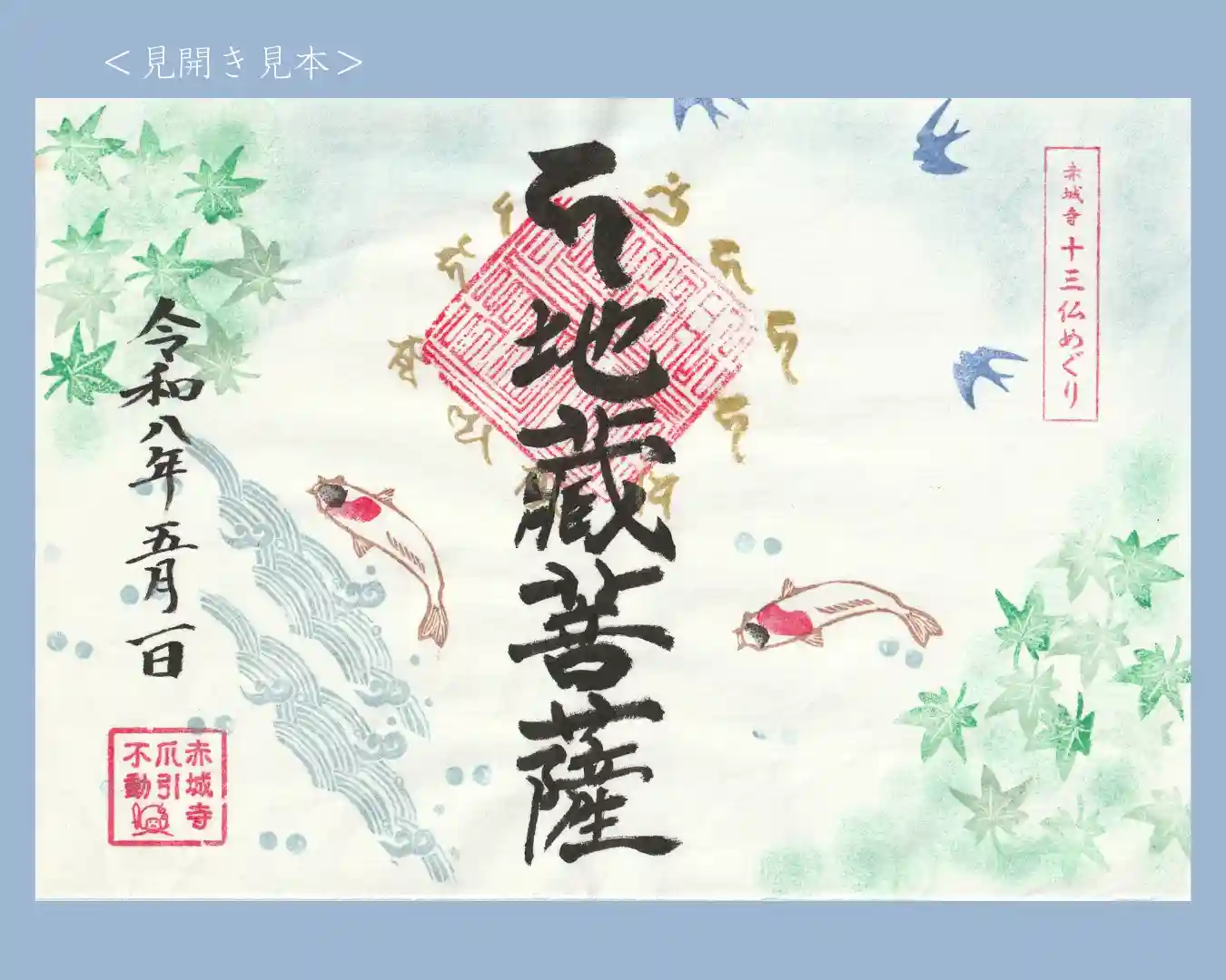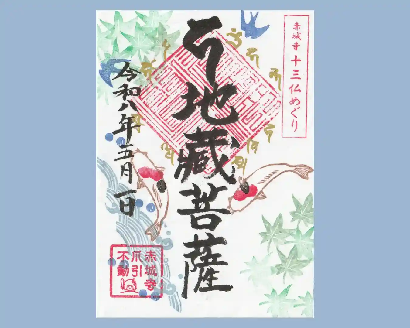 五月の十三仏めぐり御朱印 は"鯉と青紅葉"です。