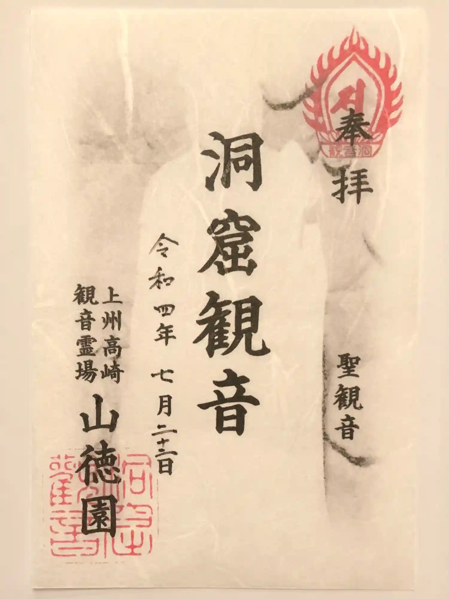 衆宝観音様の御朱印です。淡い色で観音様のお姿が印刷されています。