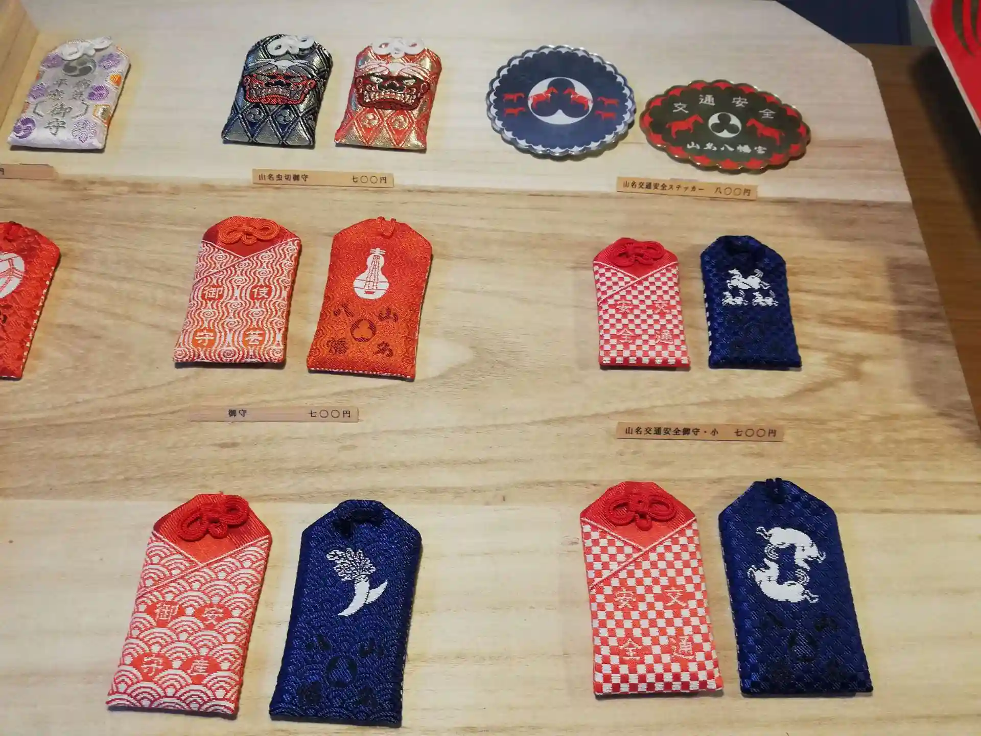 獅子頭や安産祈願のお犬様のお守り。