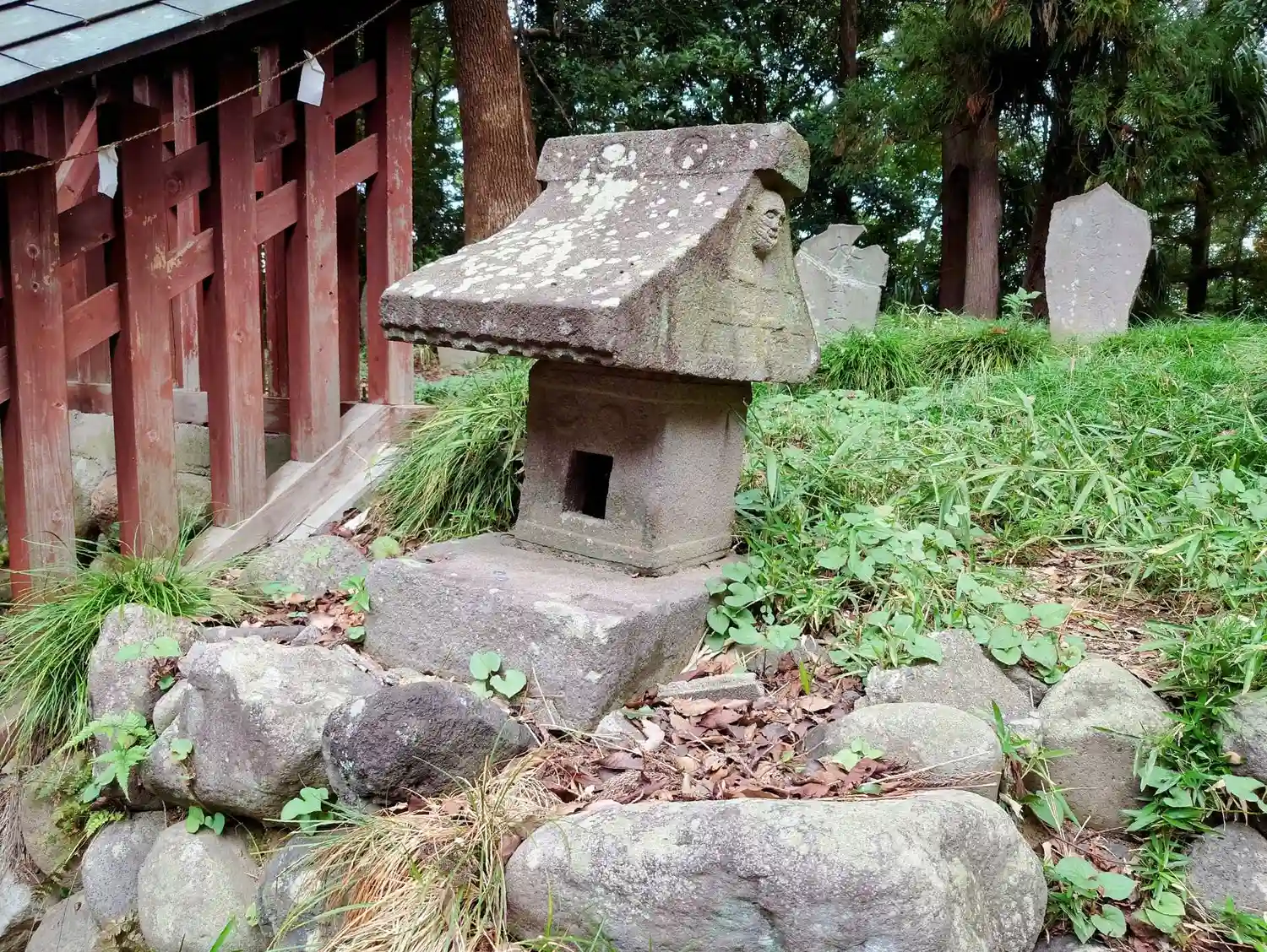 石祠 屋根部分に人の顔
