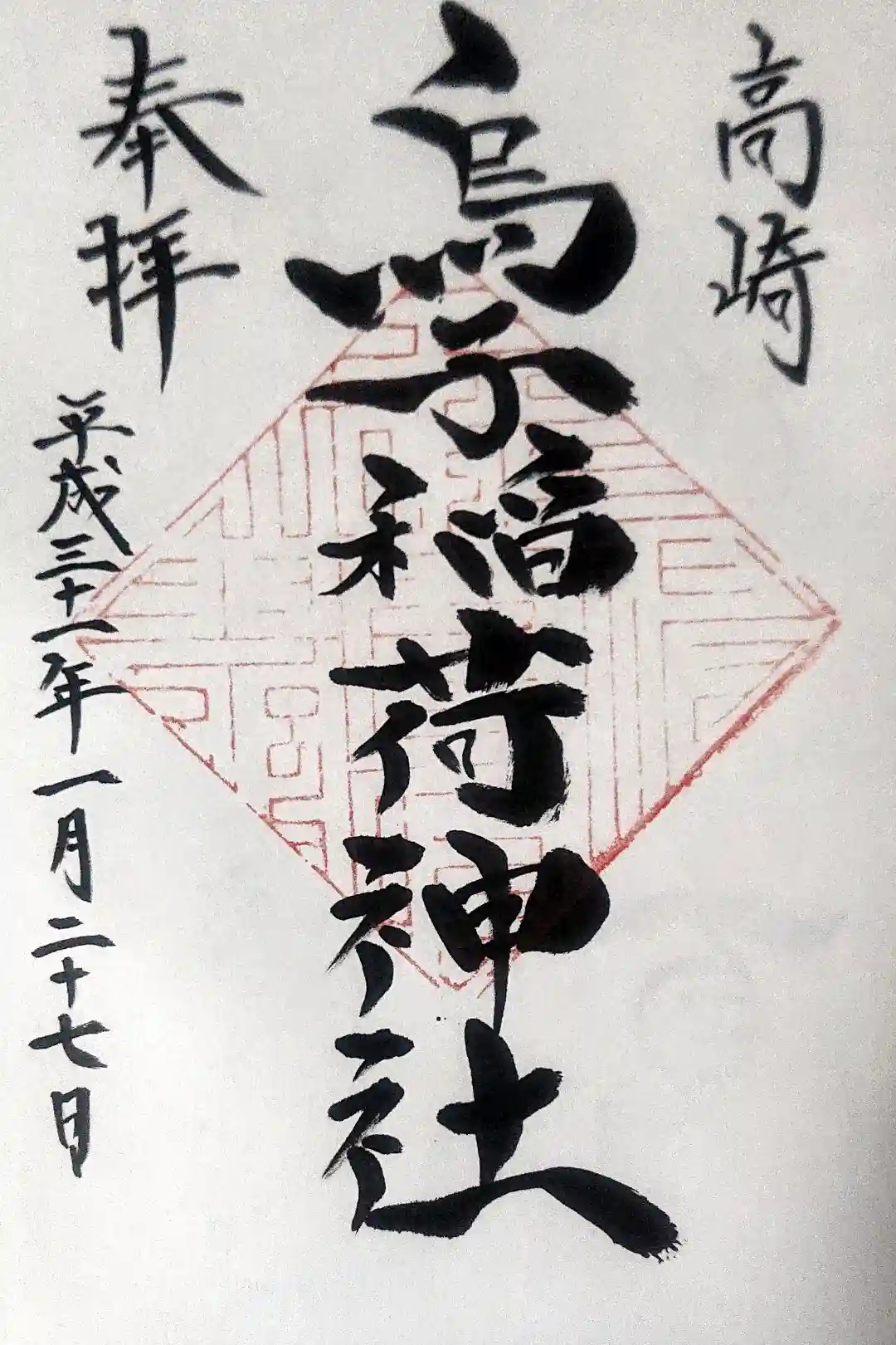 通常神棚は満席ですが、こん平師匠のカバンのごとく、我が家の稲荷神棚にはまだ若干の余裕がありましたのでお札いただいてきましたw