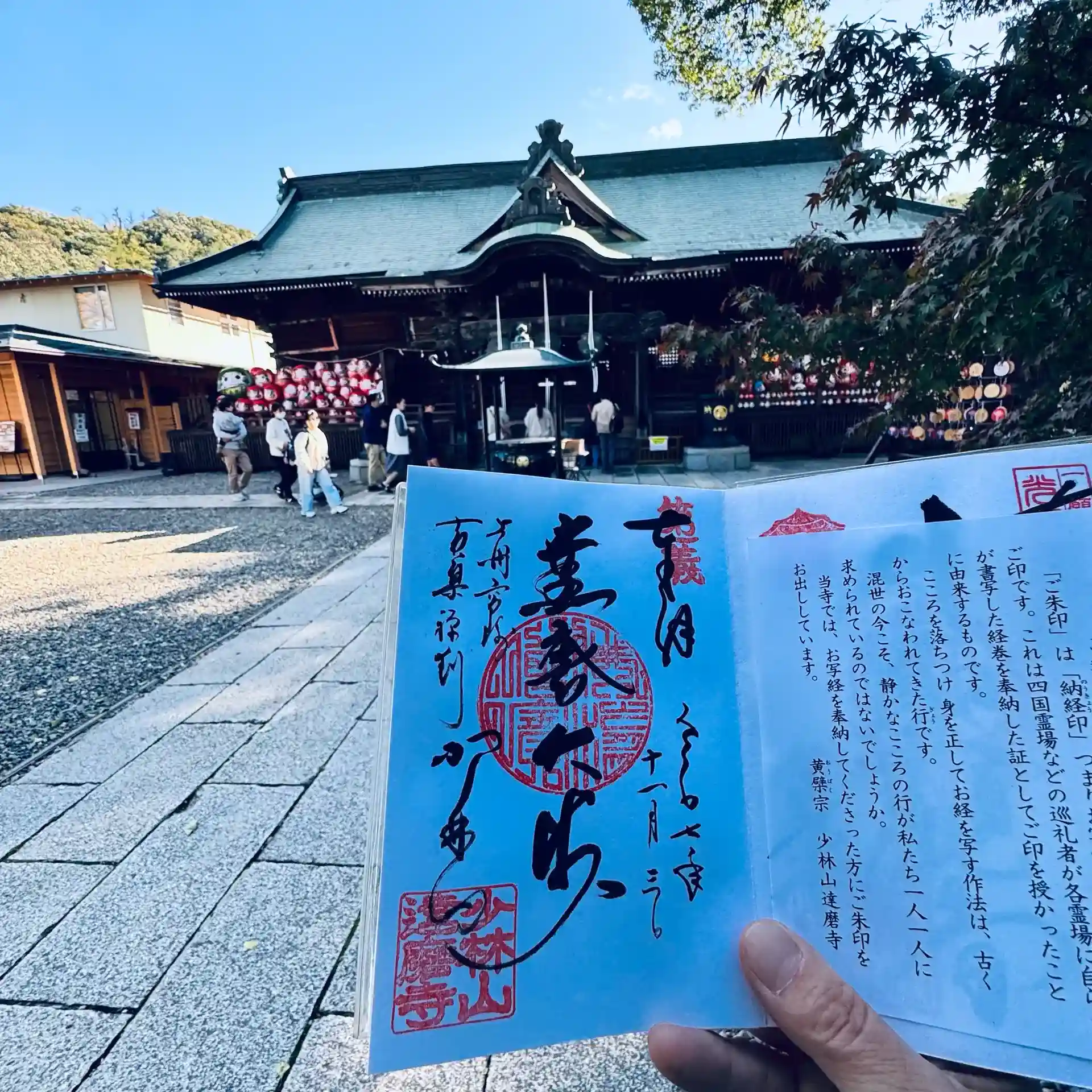 寺務所窓口へ御朱印をお願いし写経と願い事、日付け氏名を一筆してから達磨大師像に向かってご祈祷をあげた後に御朱印をいただきました🙏