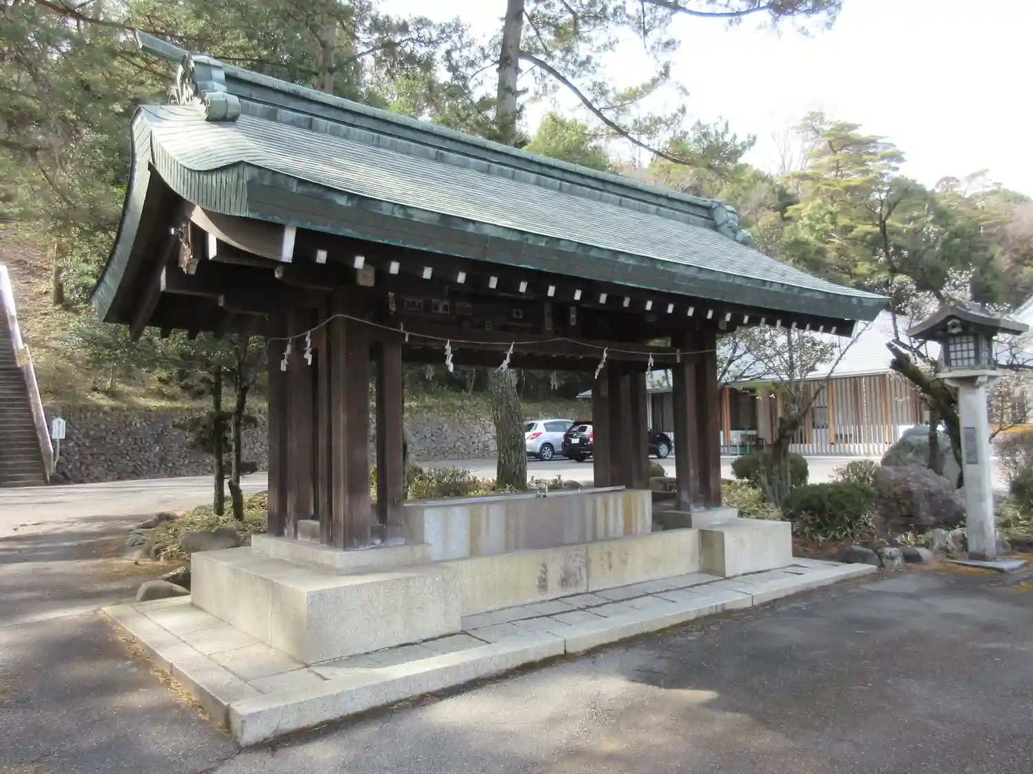 参道左側の<手水舎>。大きくてしっかりしている。
