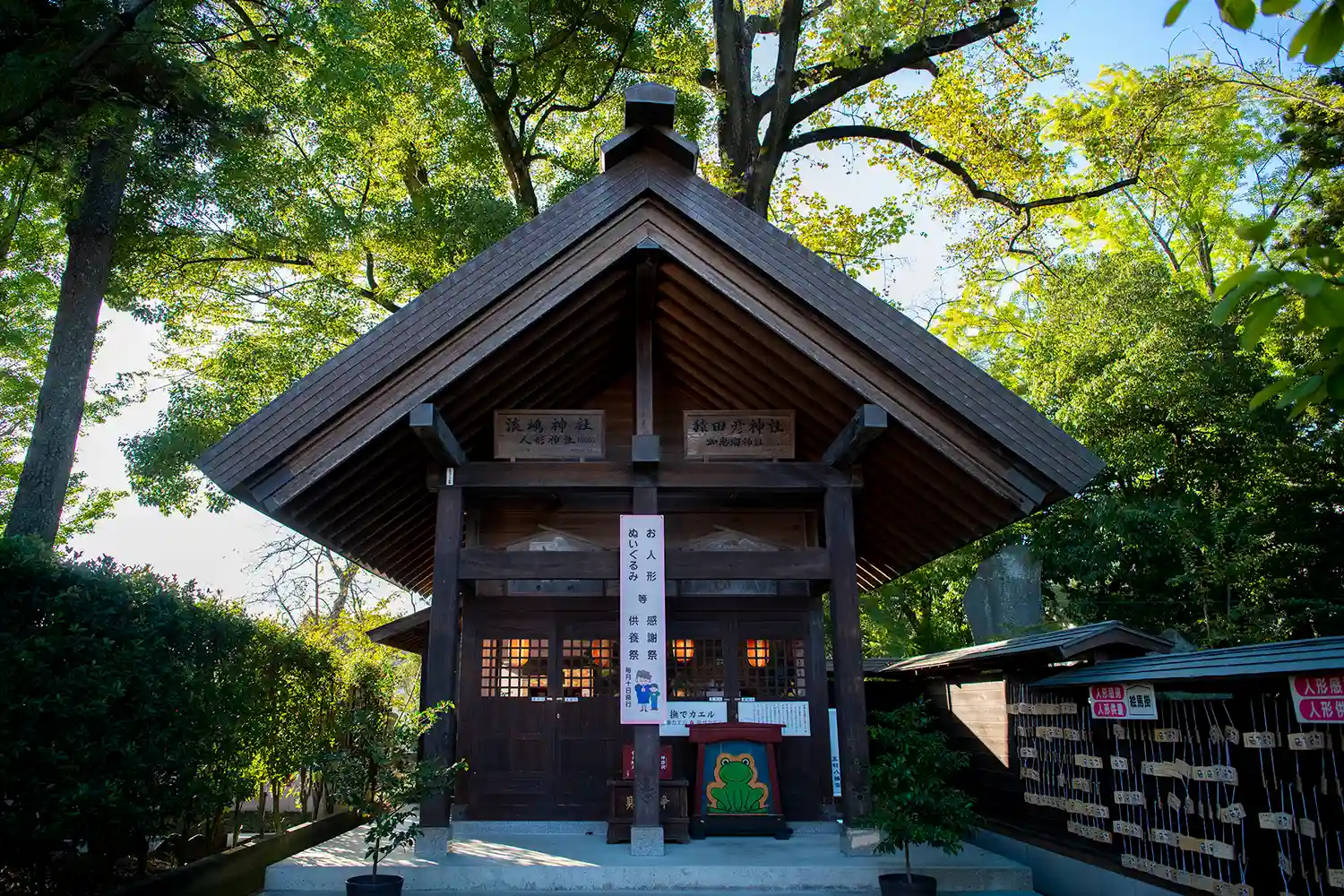 猿田彦神社は交通安全、淡島神社(少彦名)は人形感謝(神社なので供養とは呼ばない)の御利益で、10月には人形祭りもあるそうです