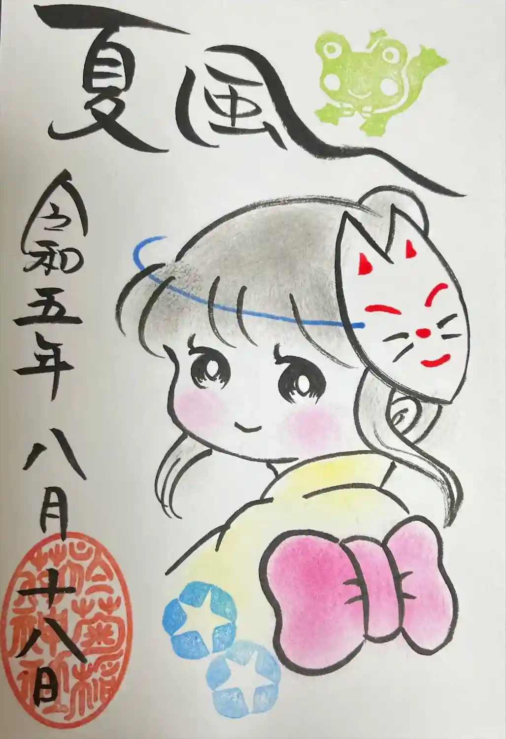 8月の白狐社御朱印です。毎月デザインが変わるそうです。