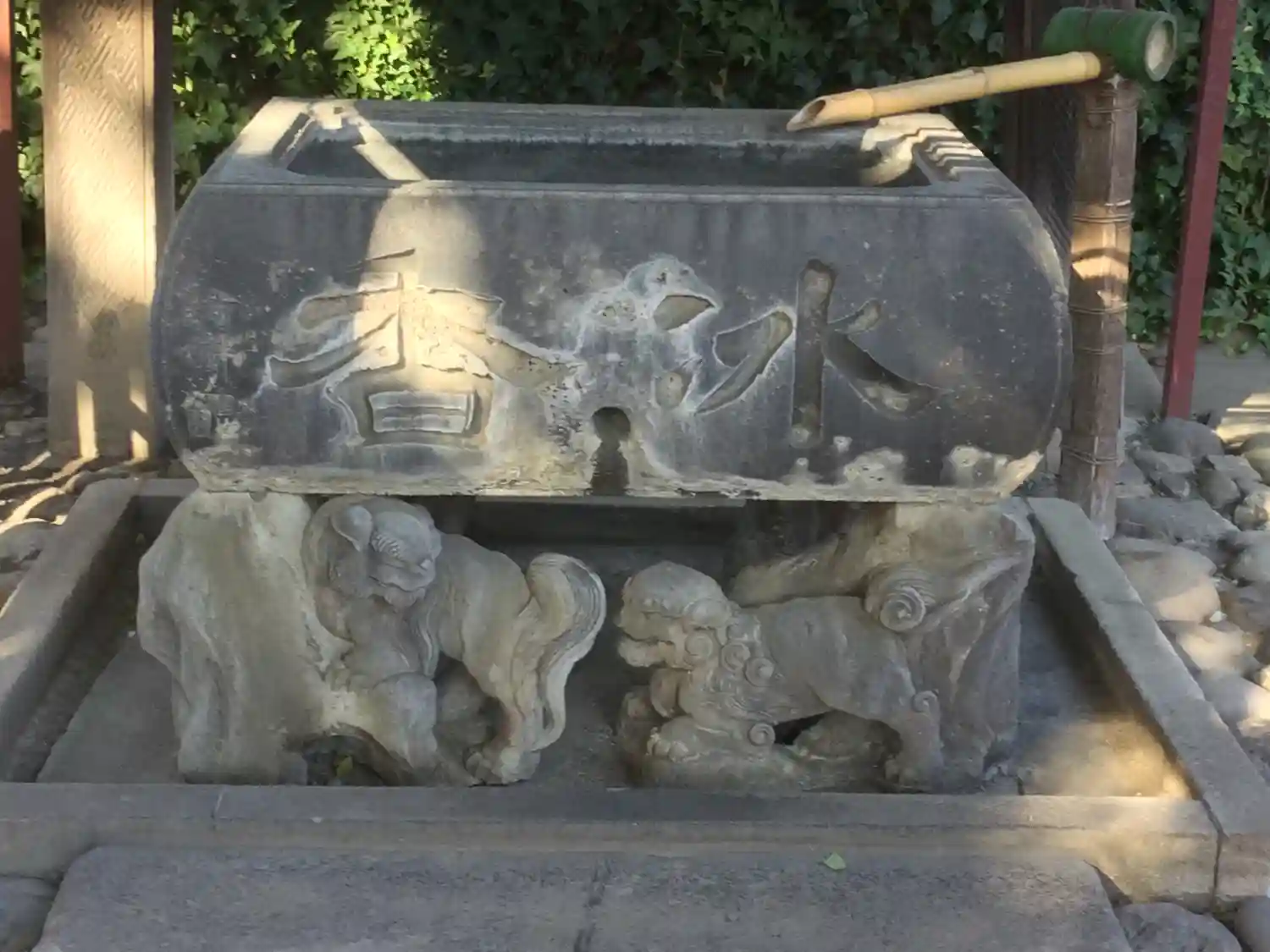 手水盤を支える狛犬