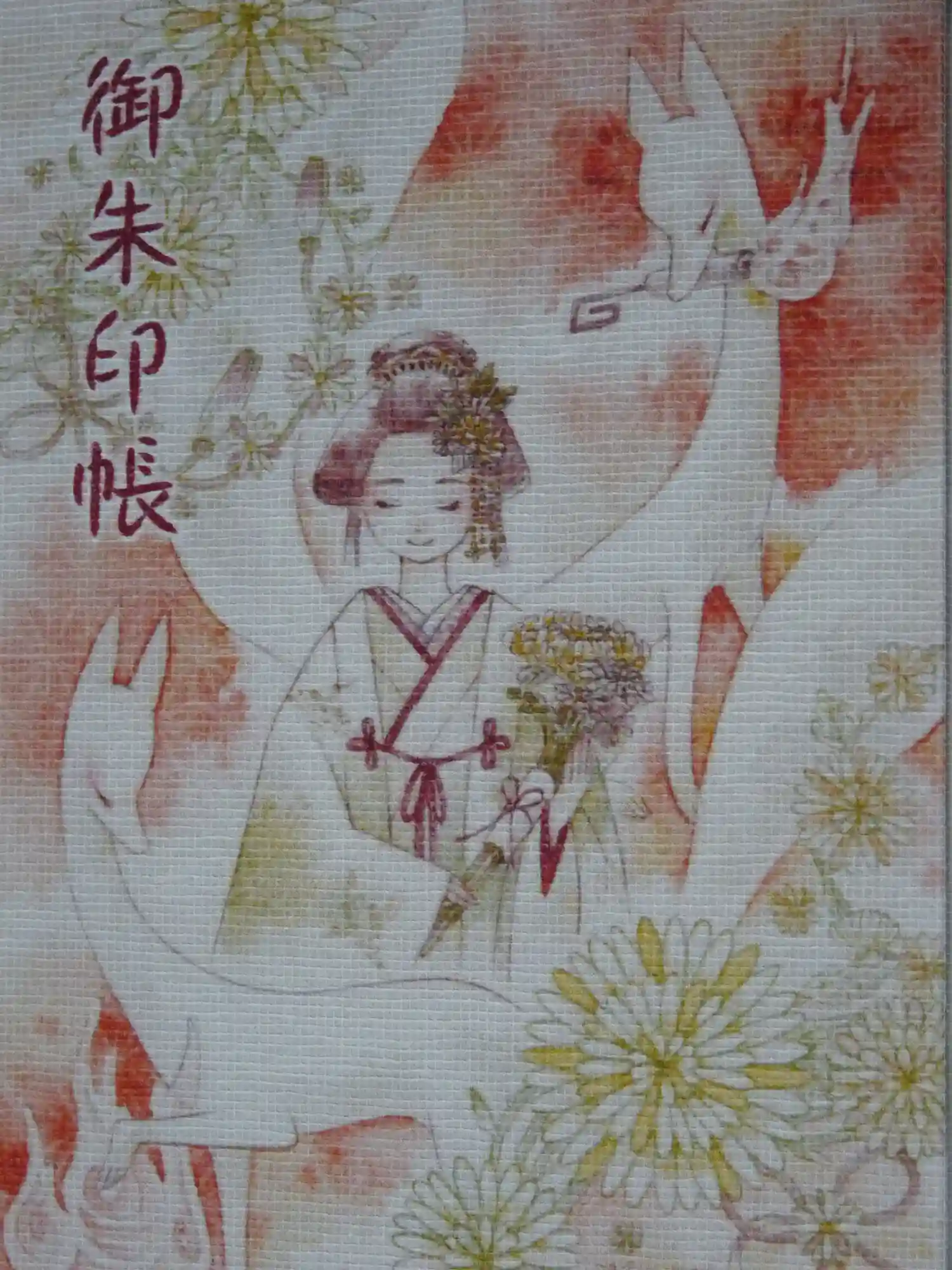 月代わりの御朱印には狐や於菊さんのカラフルなイラストが入っています。