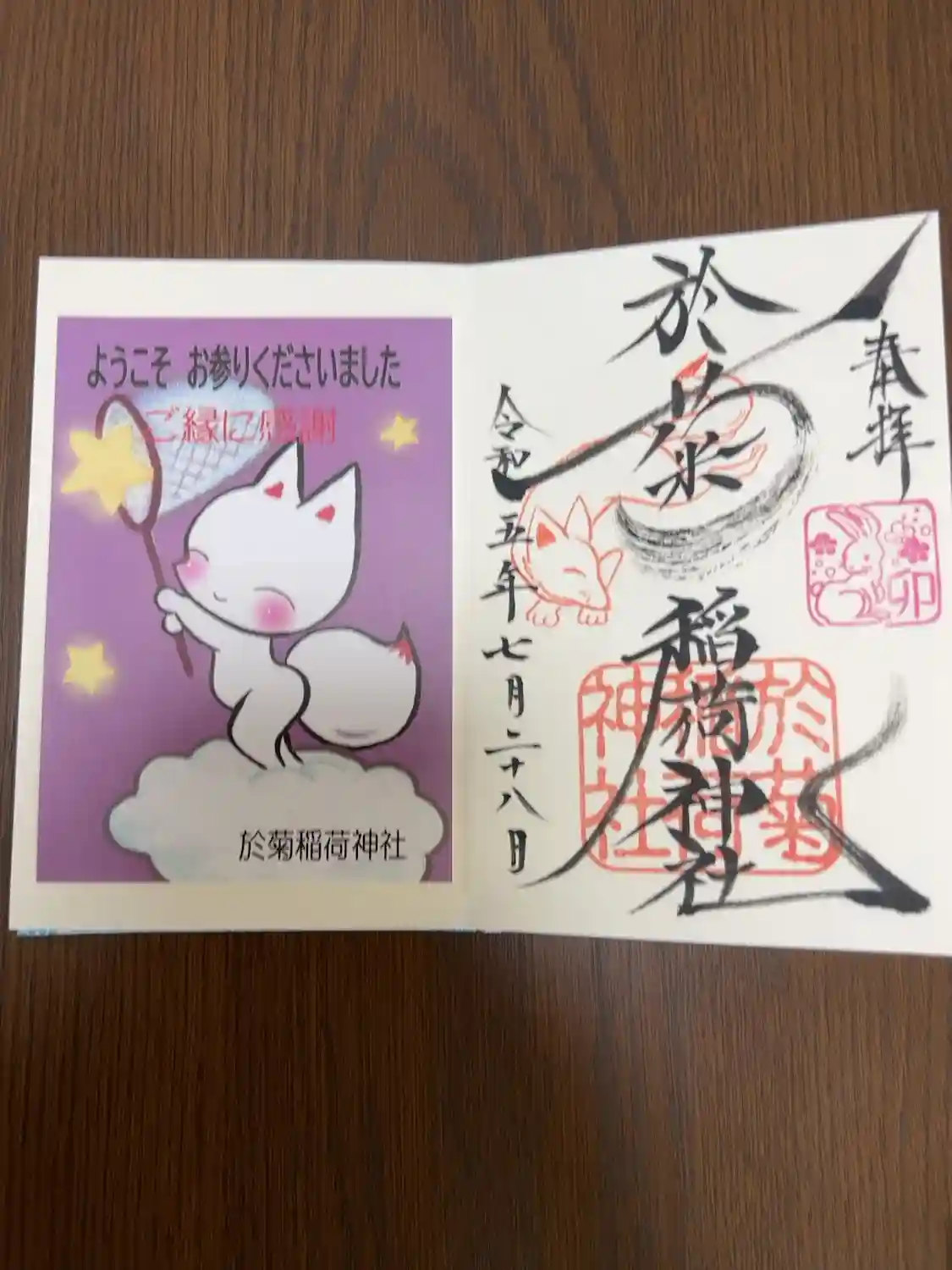 最初の参拝時に頂いた御朱印は、「卯」の印部分は於菊さんのスタンプでした😄