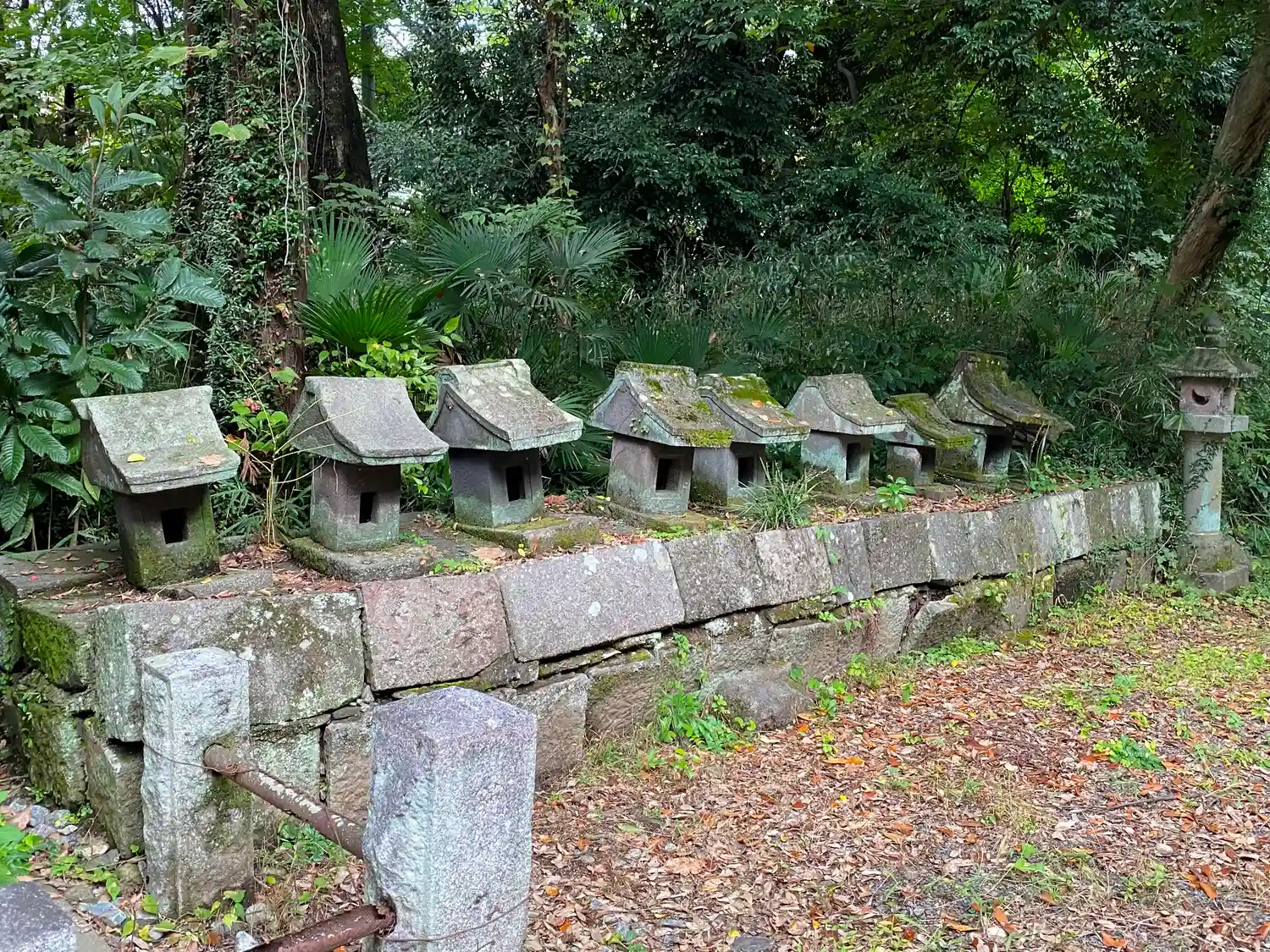 社殿の裏手にある石製小祠群。