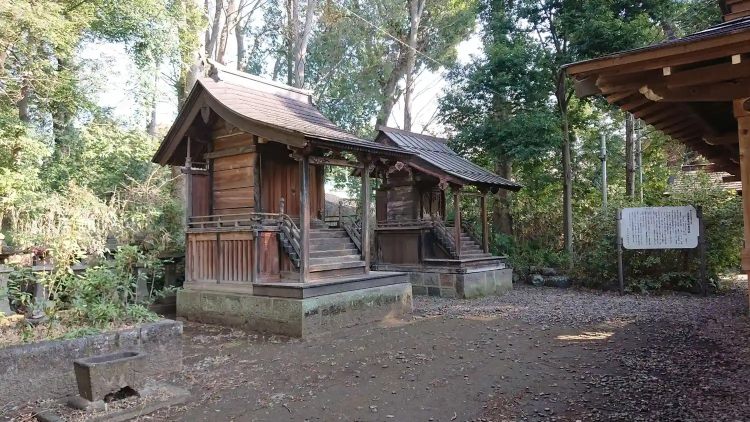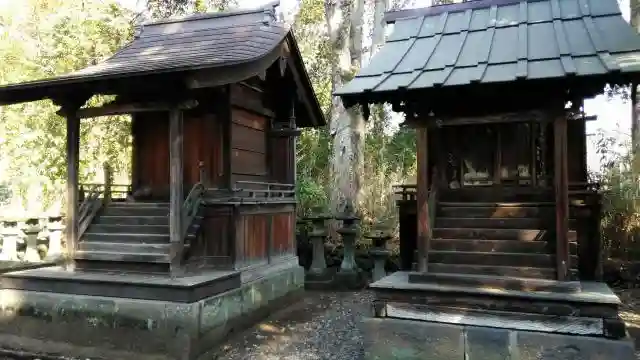 社殿の裏手にある一間社流造の境内社。右側の<春日社>は戦国時代中(1600年前後)の建立で、桐生市最古の建造物とのこと。