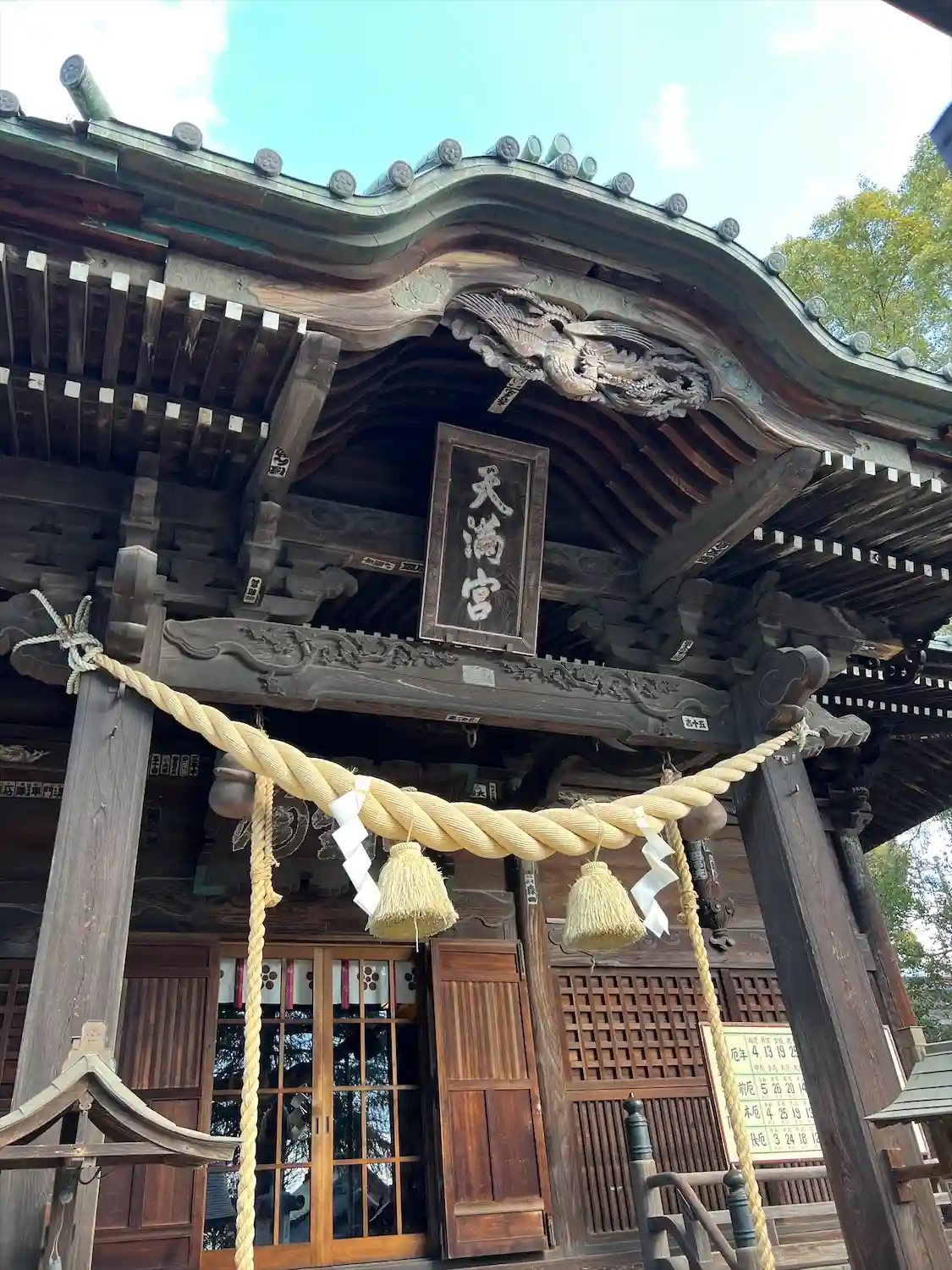 拝殿と本殿の彫刻が素晴らしい!看板に彫刻の見るべきポイントが書いてあるので、探してみましょう。太鼓…