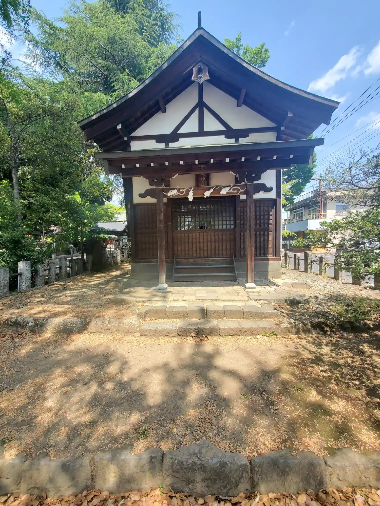 拝殿は塀に囲まれています