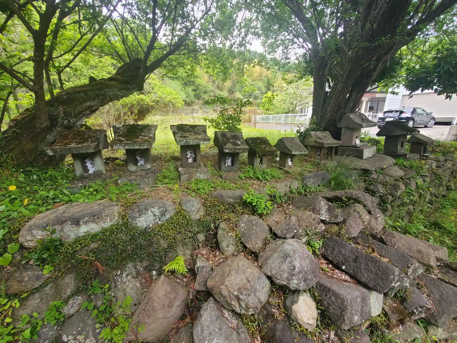 右奥に石祠群、いずれも祭神不明