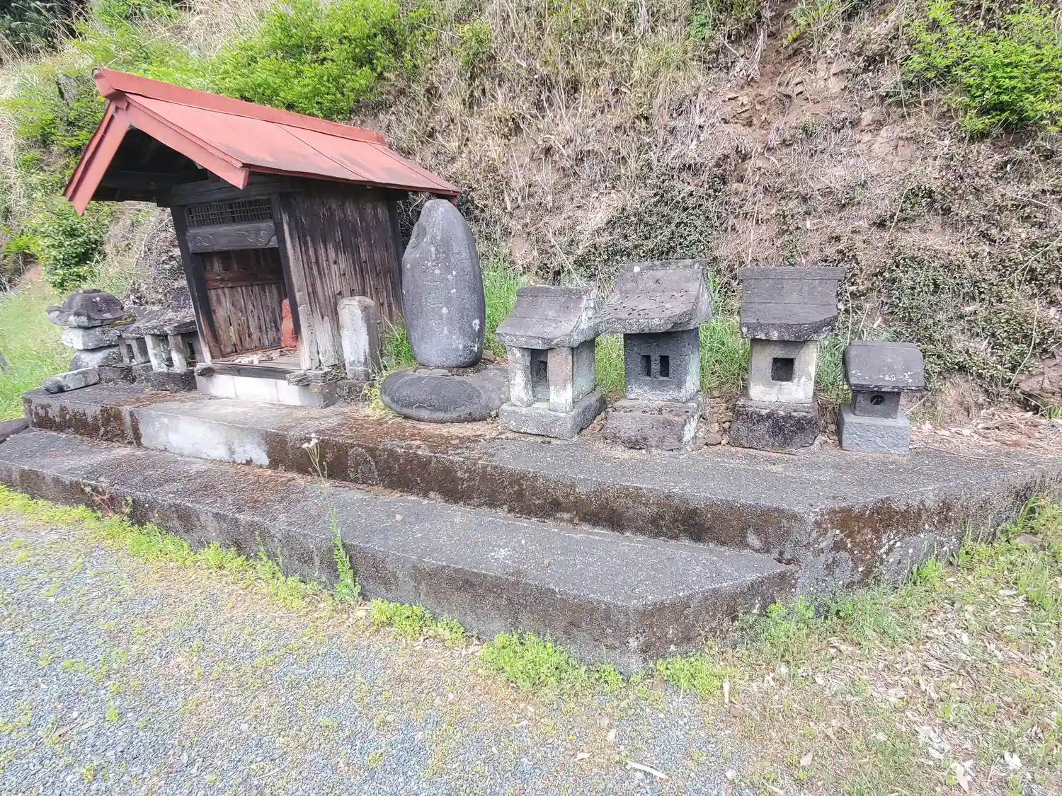 石祠や先端の落ちた五輪塔