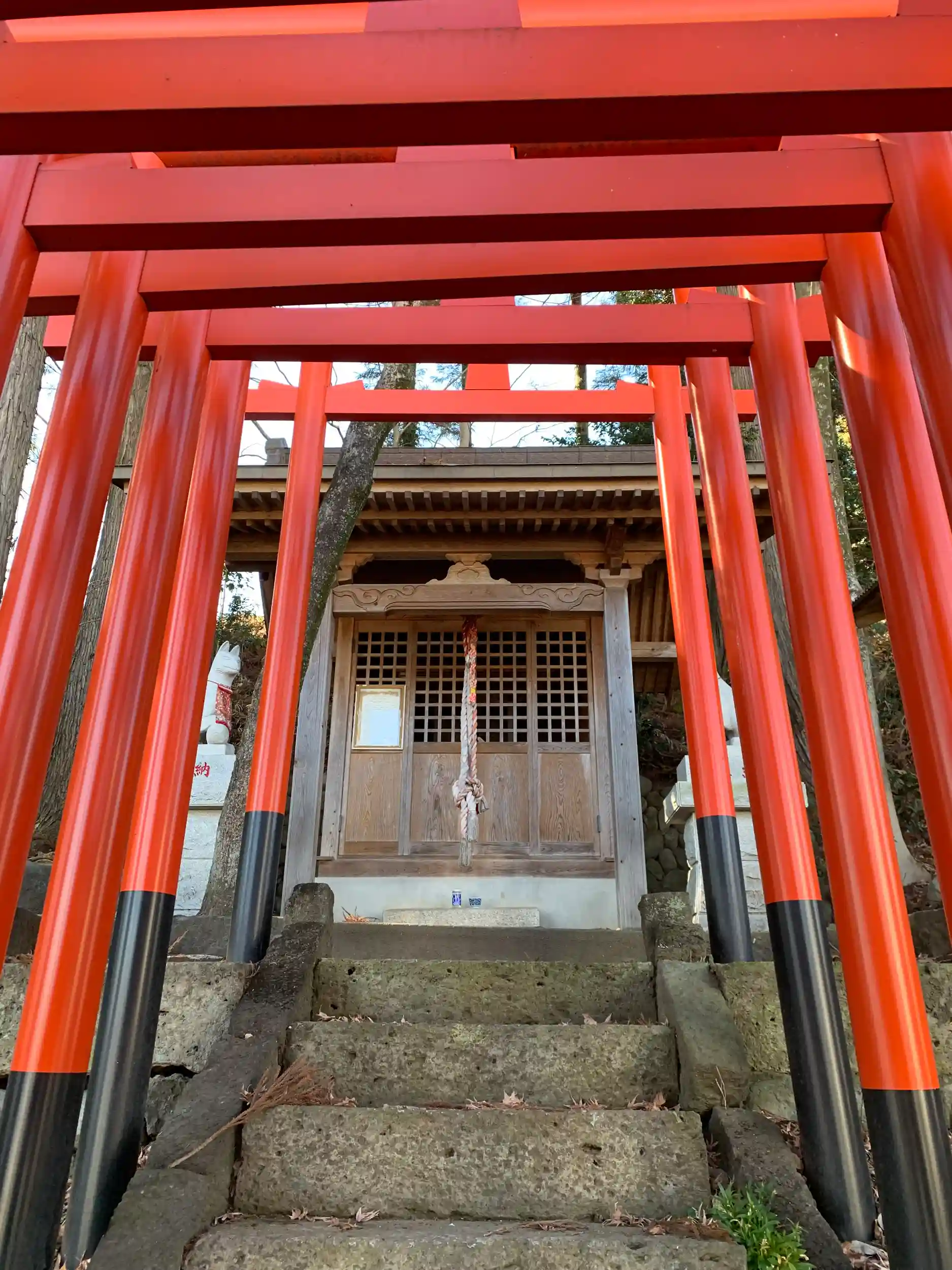 最近朱の連鳥居ができたらしく、階段の両脇に並んでいる様子はなかなかです。