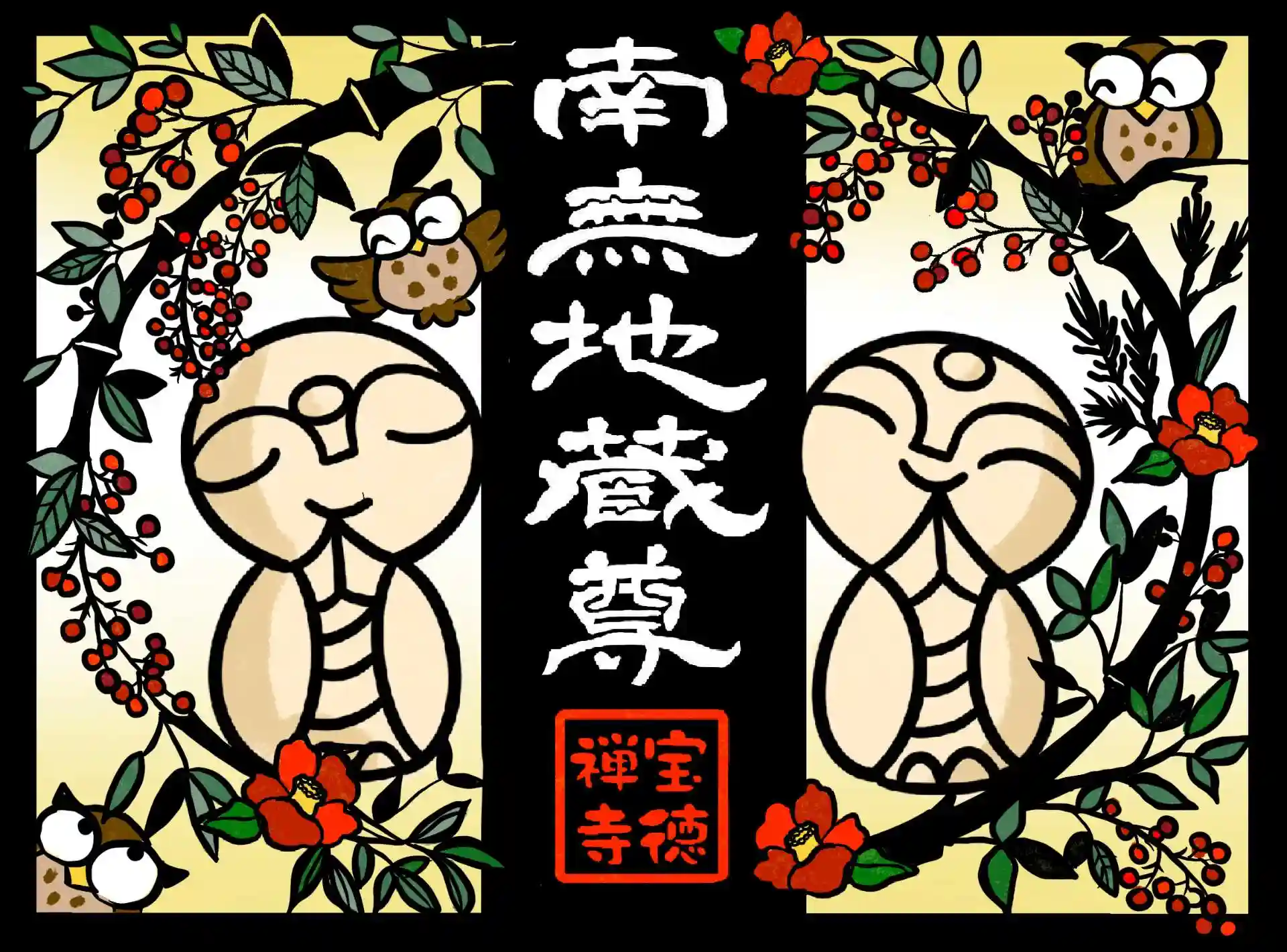 ほっこり地蔵と四季の花(1月)